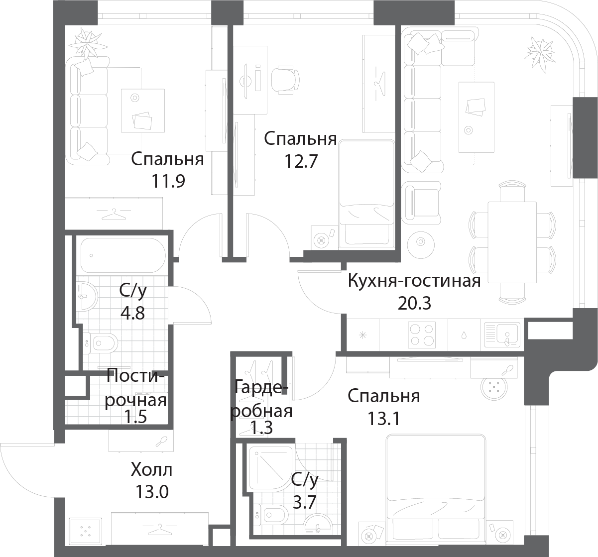Трехкомнатные квартиры в Nagatino i-Land (Нагатино Ай-Ленд)