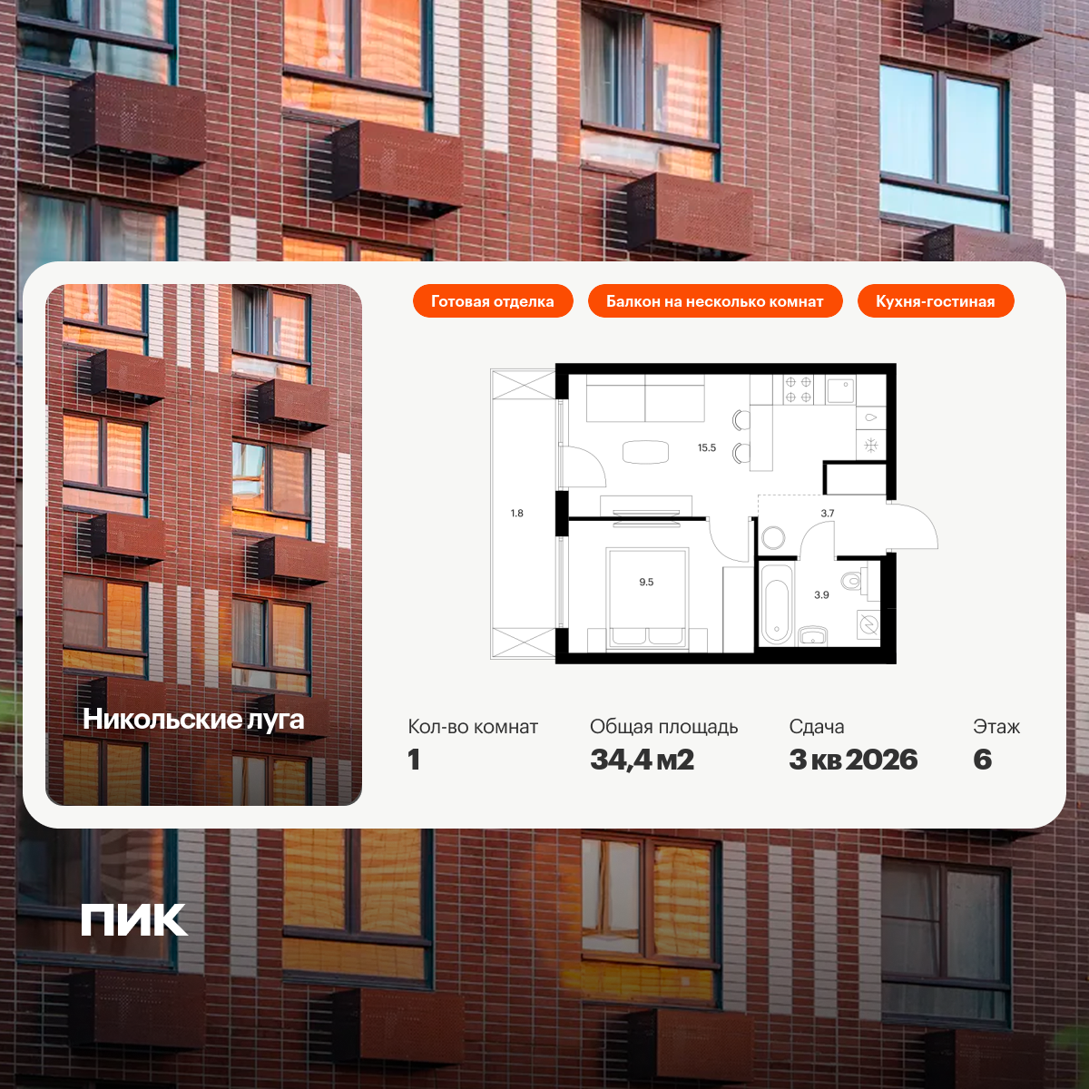 1-комнатная (34.4м2)