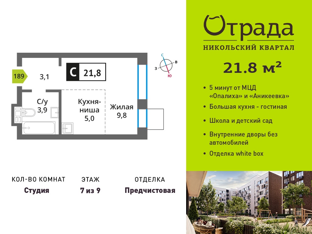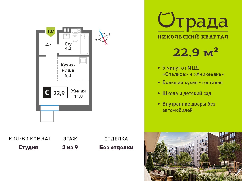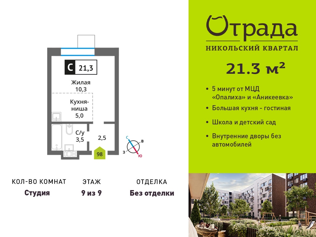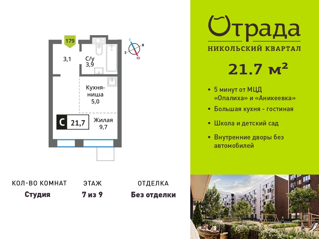 Квартирографию составляют студии, одно- двух- и трехкомнатные квартиры евроформата с просторными кухнями-гостиными.