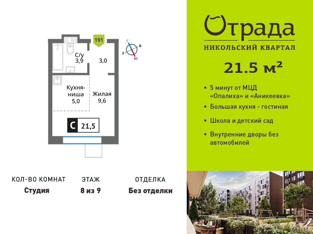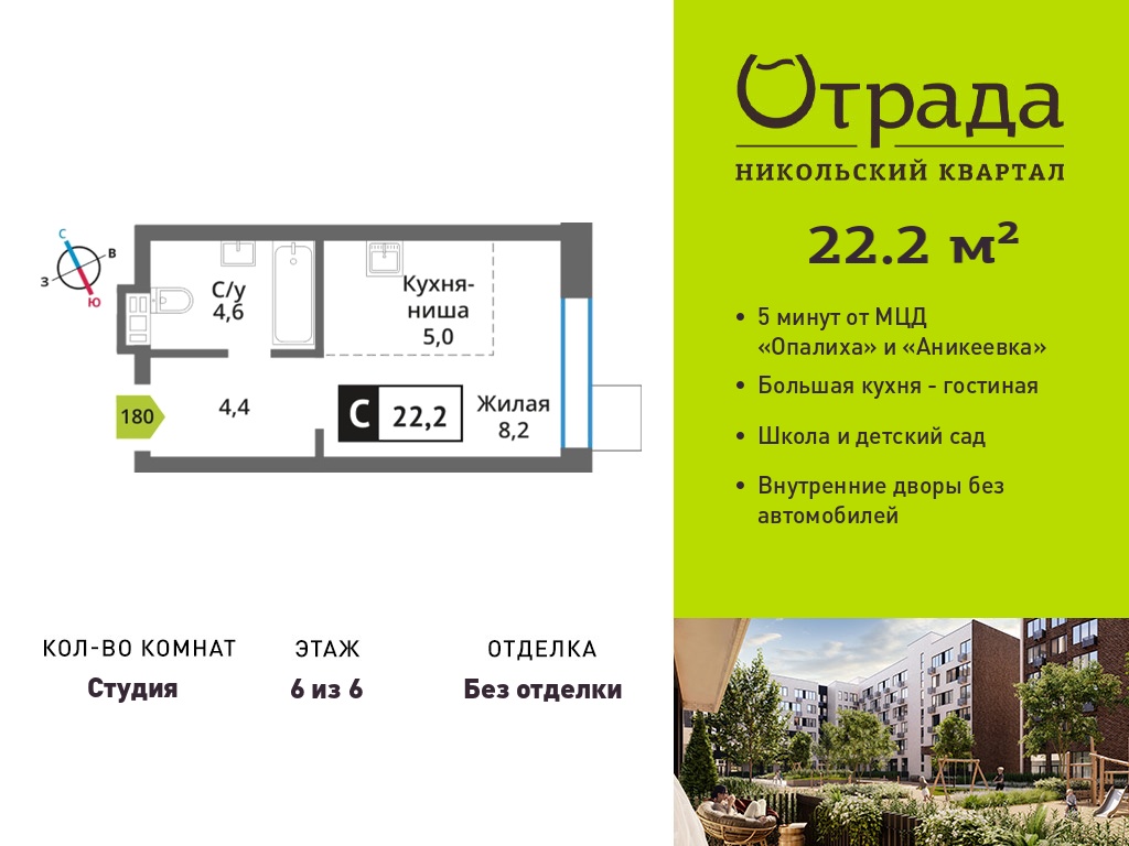 Квартал расположен в удачной локации, которая сочетает благоприятную экологическую обстановку с прекрасной транспортной доступностью. До МЦД "Опалиха" и "Аникеевка" можно будет добраться на автомобиле всего за 4-5 минут.