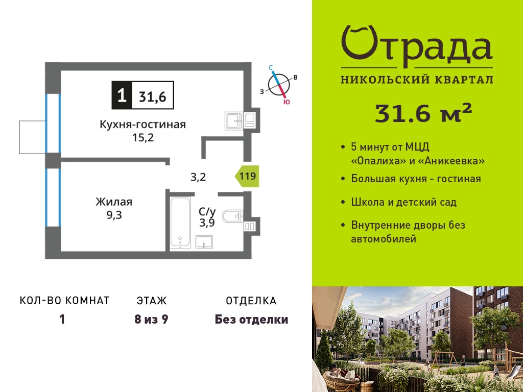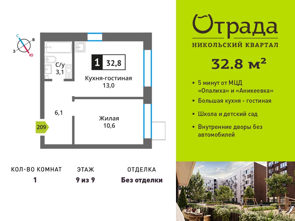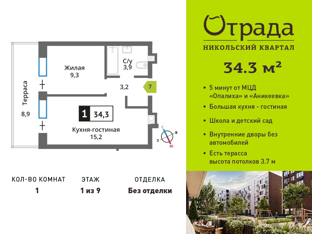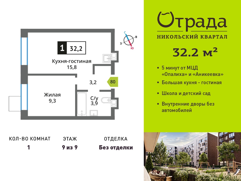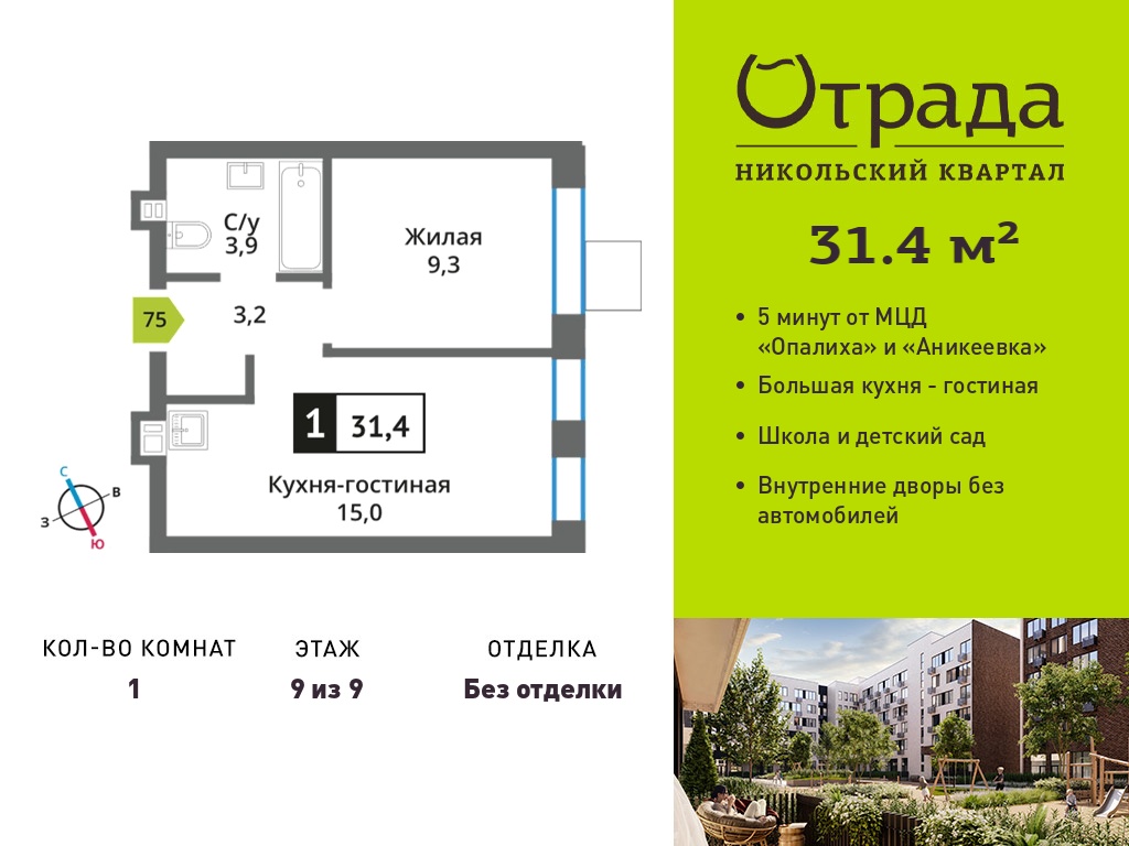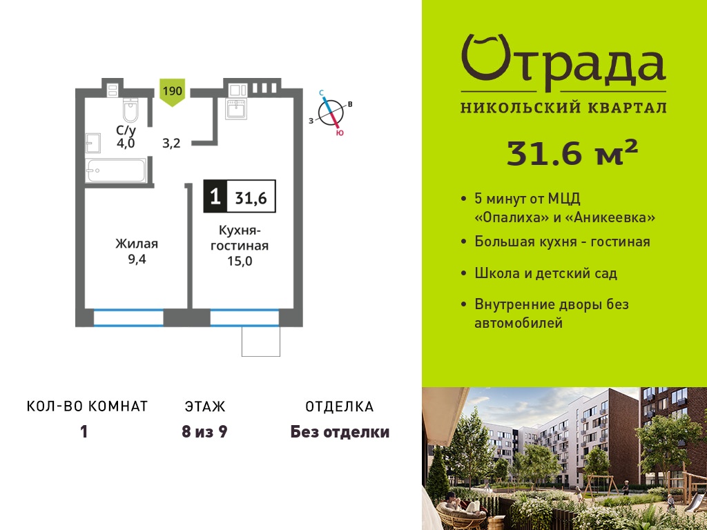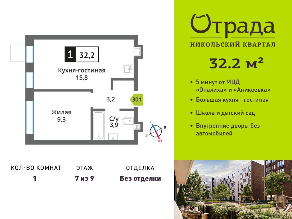 Однокомнатные квартиры в Никольский квартал Отрада