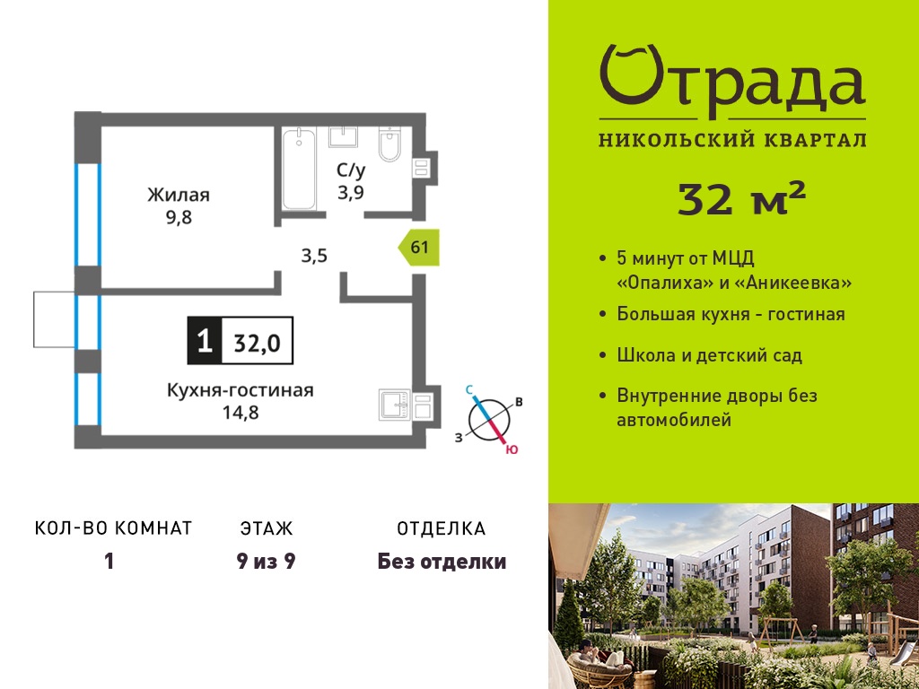Квартирографию составляют студии, одно- двух- и трехкомнатные квартиры евроформата с просторными кухнями-гостиными.