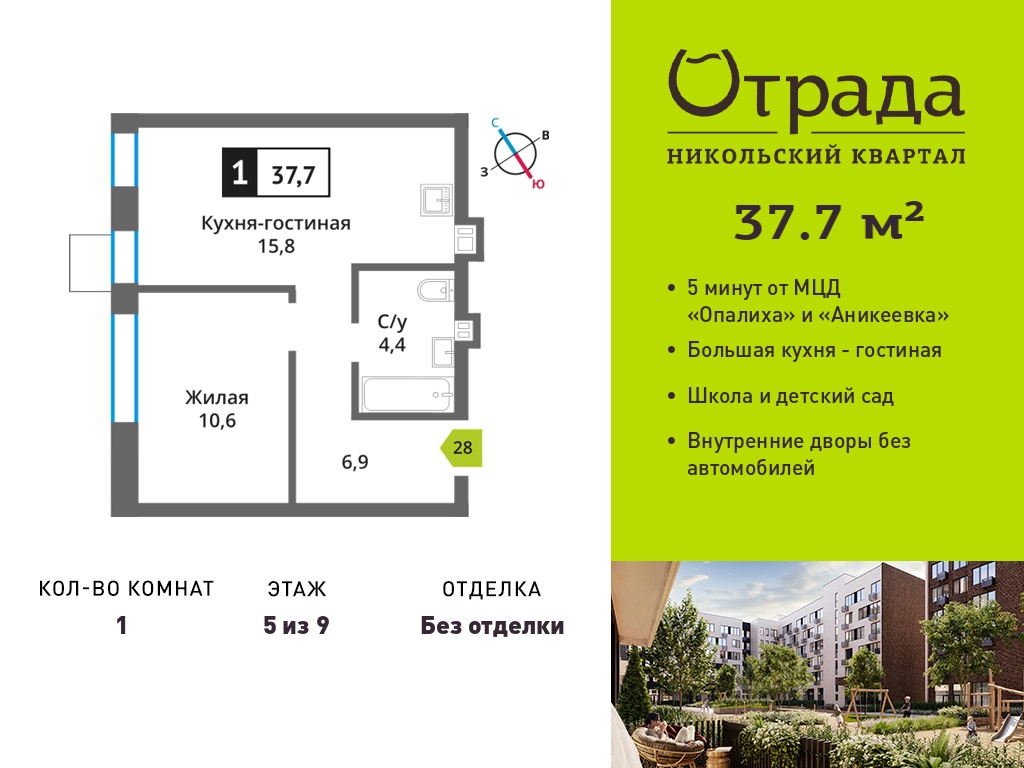Проект отличает узнаваемый авторский архитектурный стиль Кварталов Отрада. Современная европейская архитектура с элементами скандинавского стиля создает ощущение жизни в спокойном и безопасном благополучном районе.