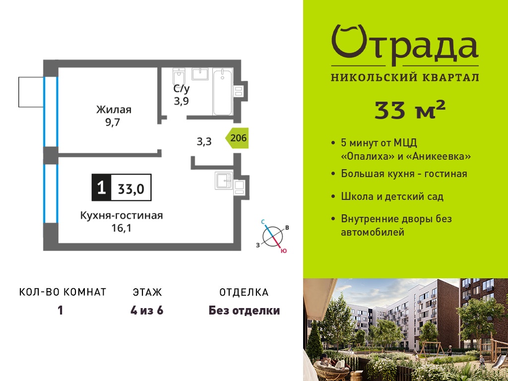 Квартирографию составляют студии, одно- двух- и трехкомнатные квартиры евроформата с просторными кухнями-гостиными.