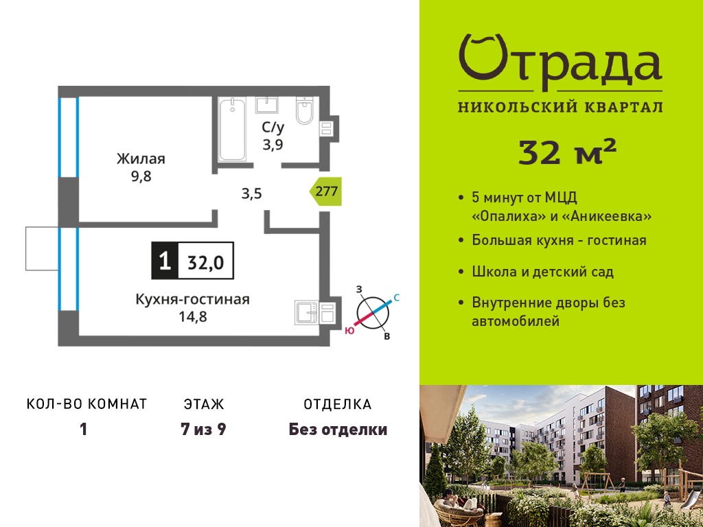 Квартирографию составляют студии, одно- двух- и трехкомнатные квартиры евроформата с просторными кухнями-гостиными.