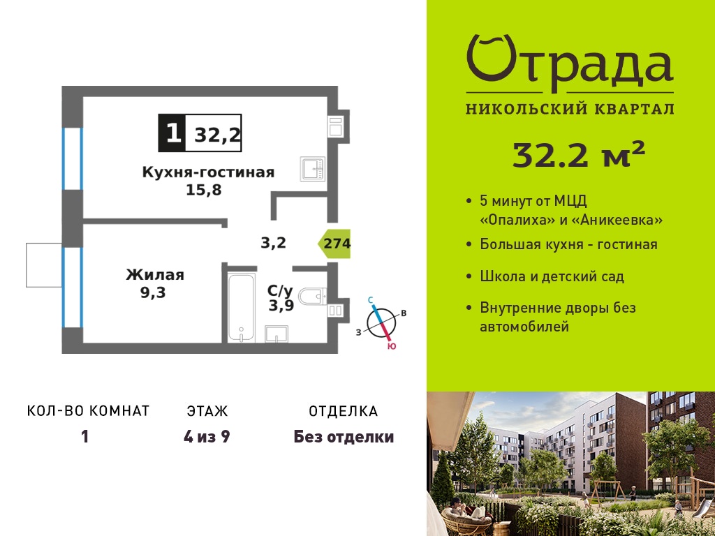 Однокомнатные квартиры в Никольский квартал Отрада
