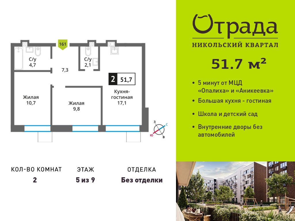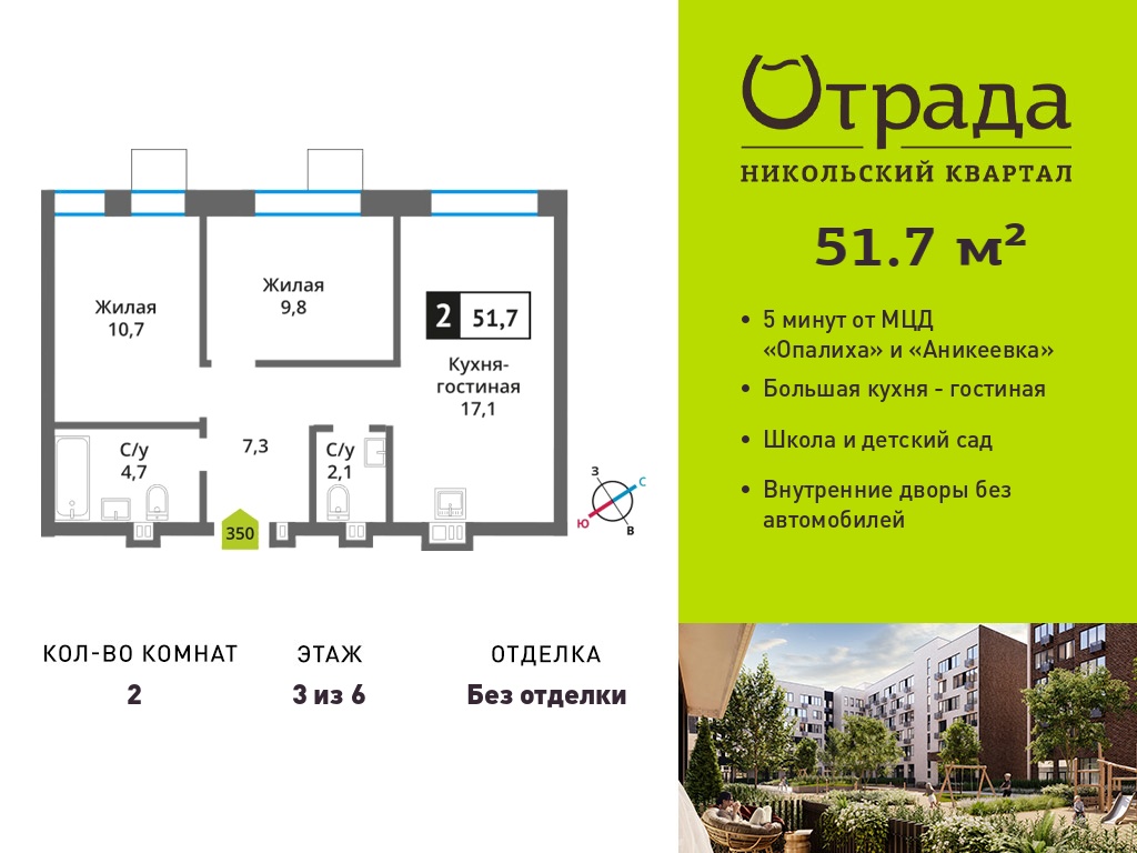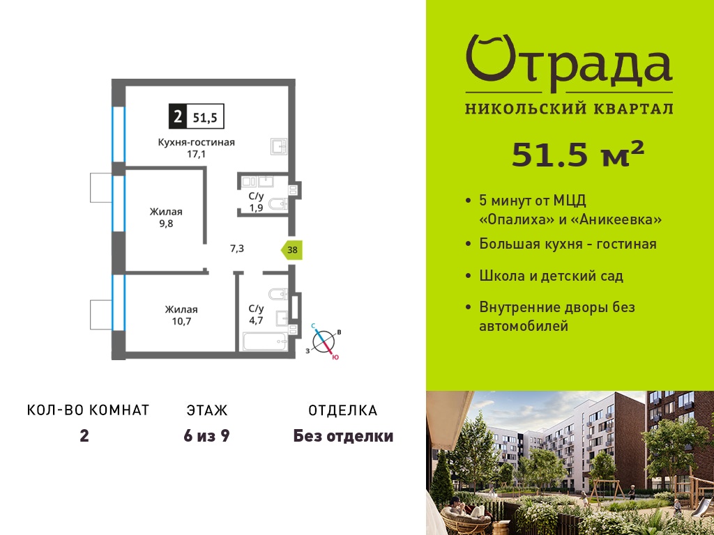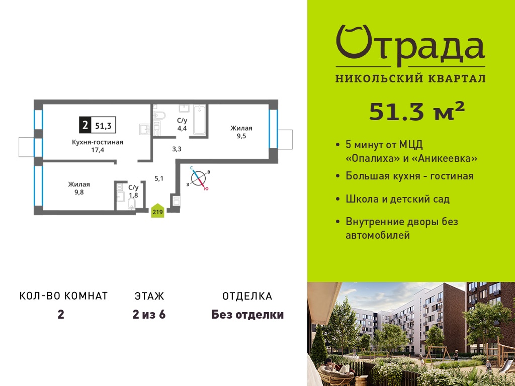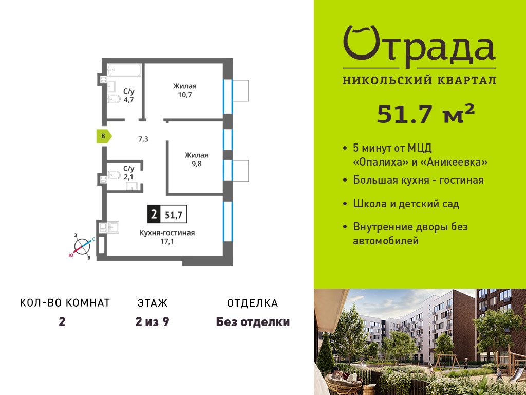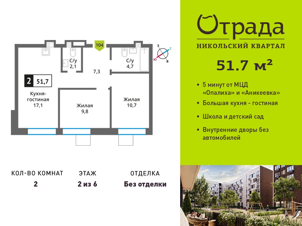 Двухкомнатные квартиры в Никольский квартал Отрада