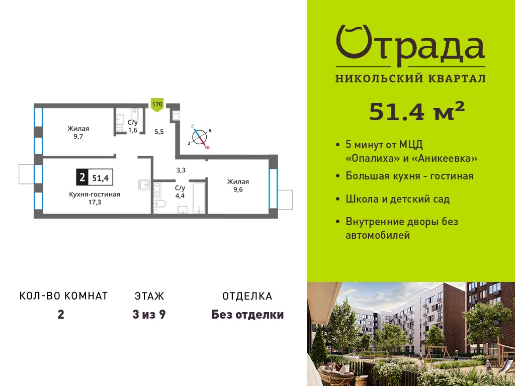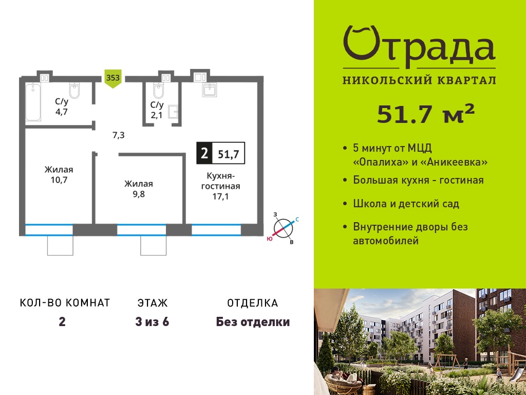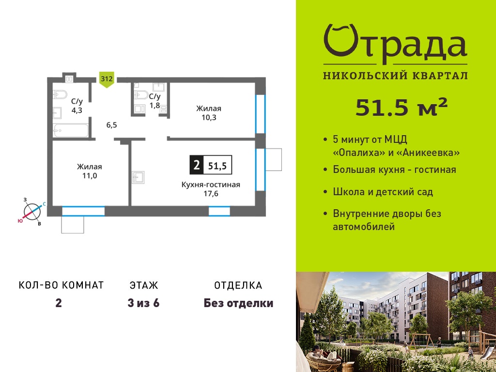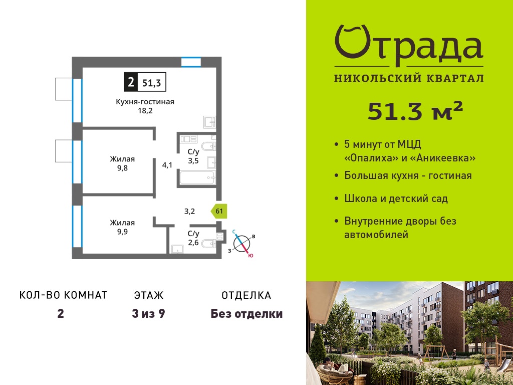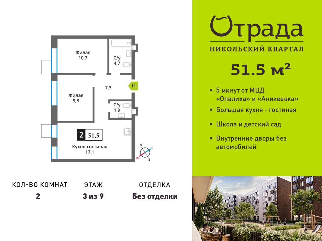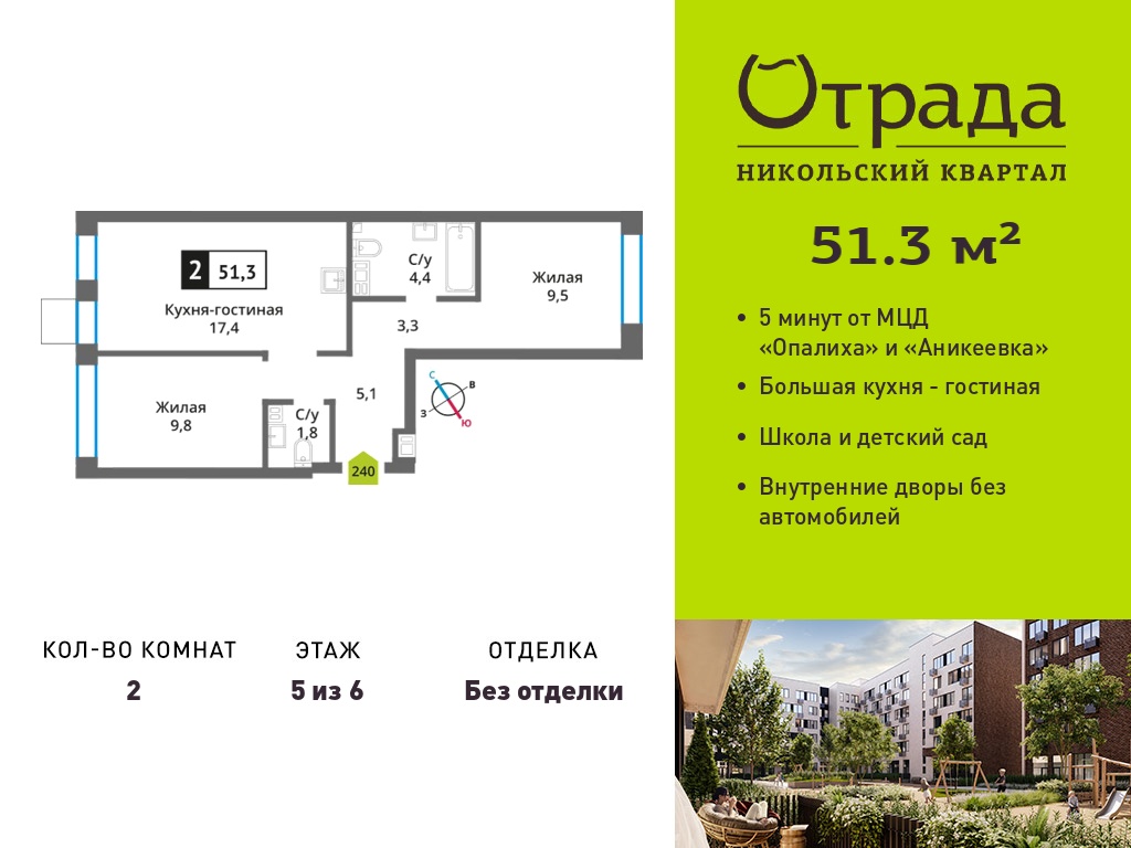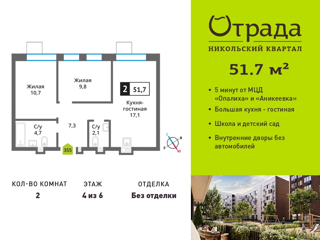 Двухкомнатные квартиры в Никольский квартал Отрада