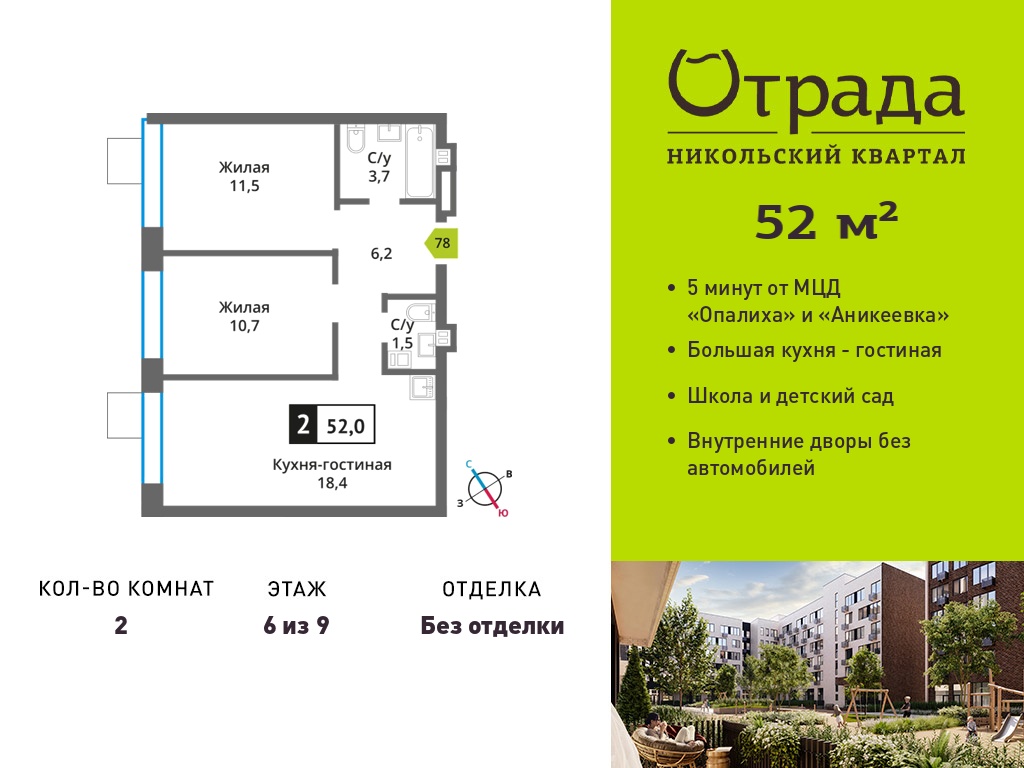 Двухкомнатные квартиры в Никольский квартал Отрада