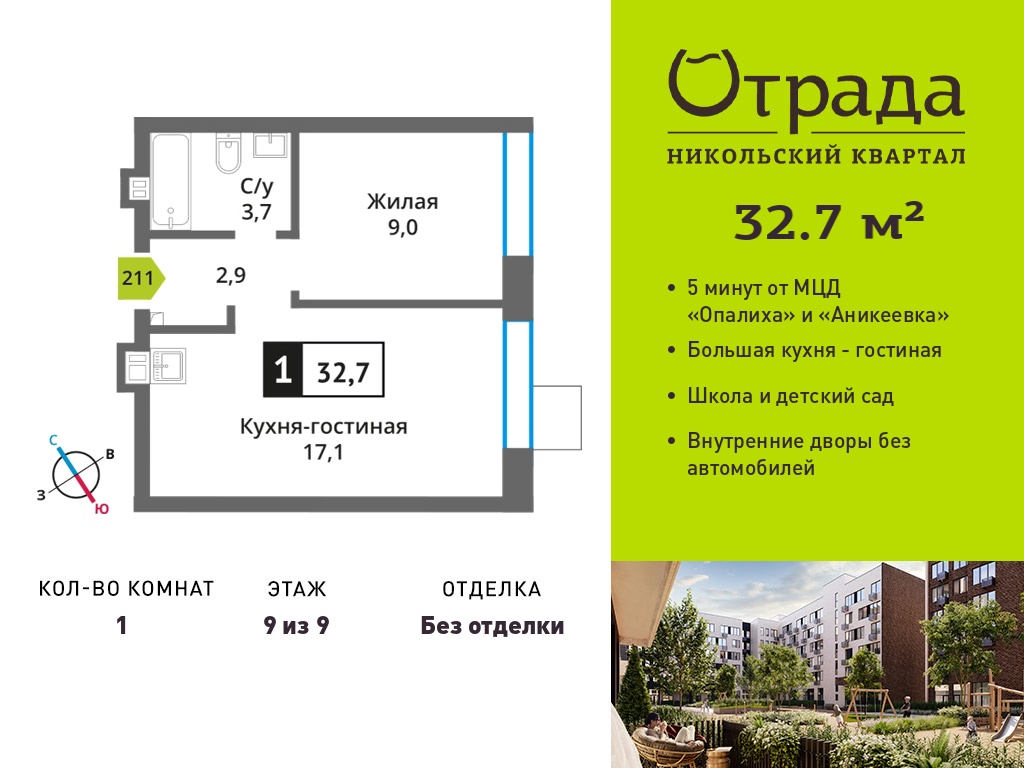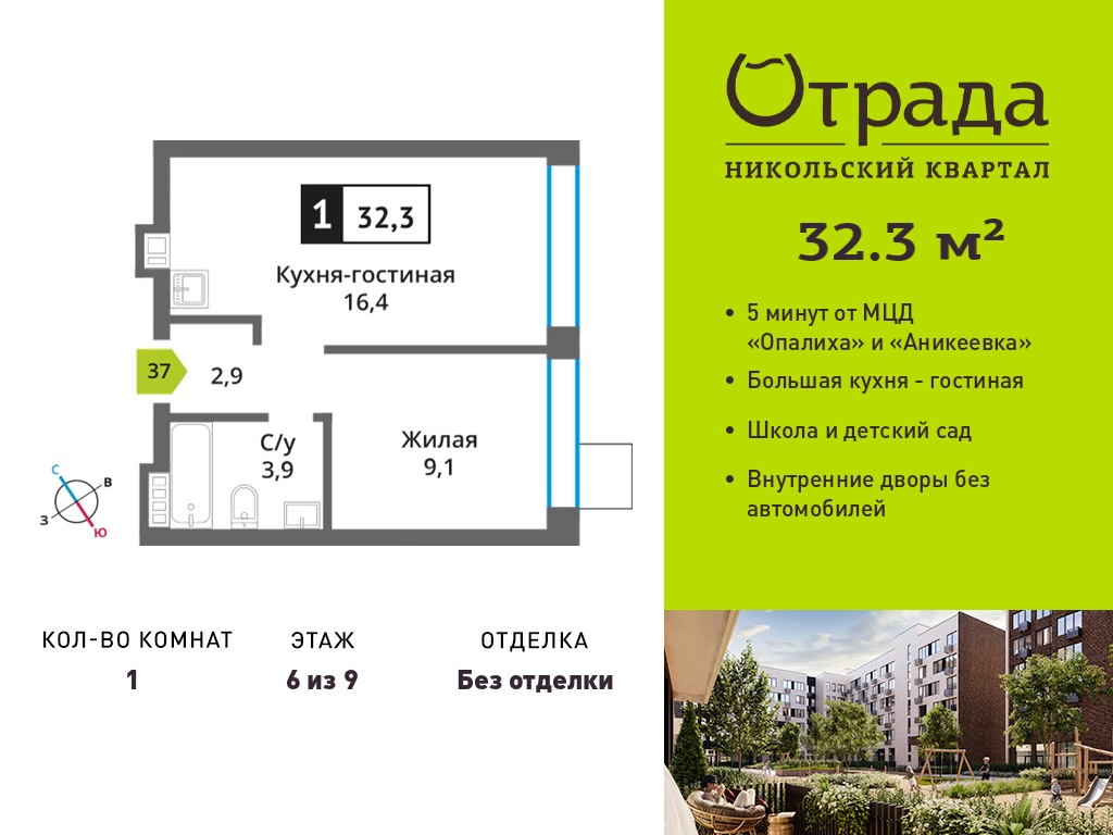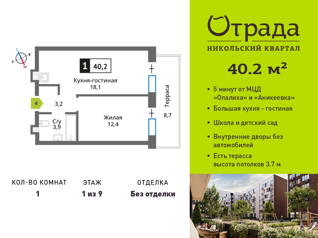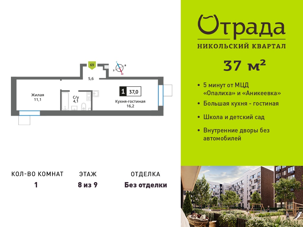 Евро однокомнатные квартиры в Никольский квартал Отрада