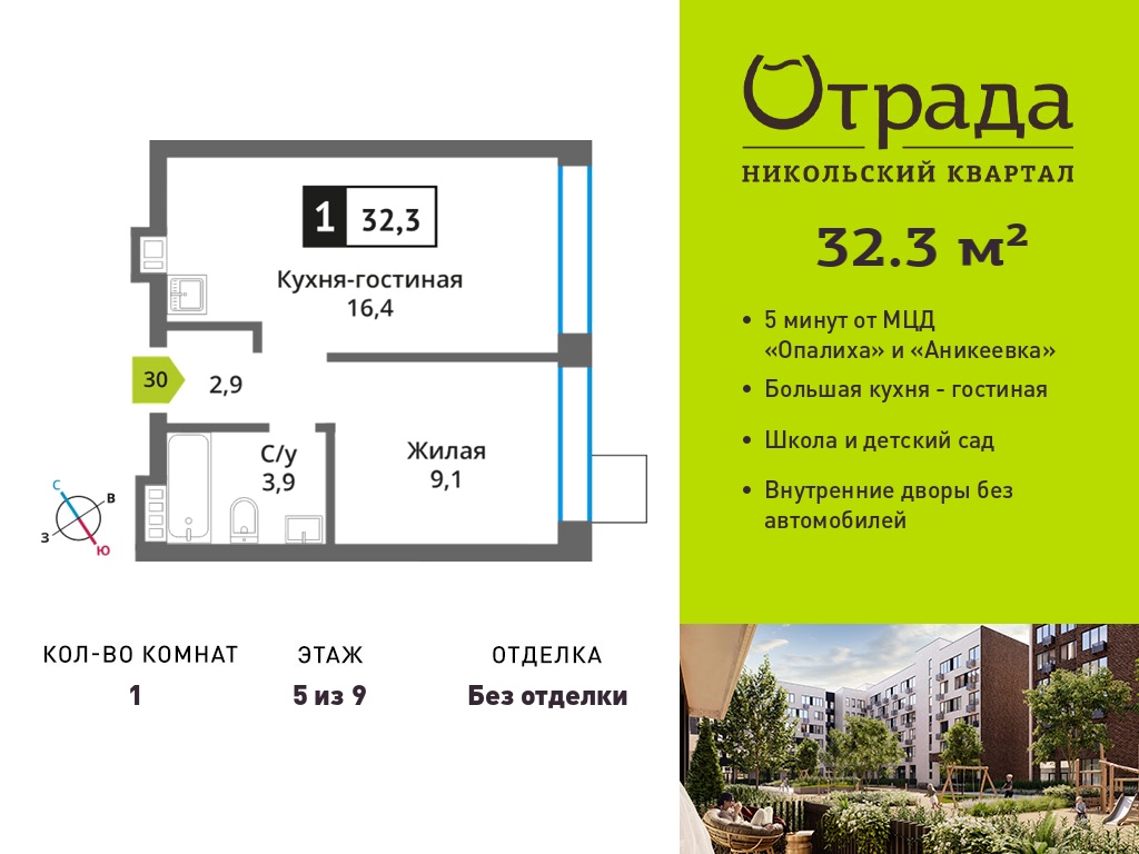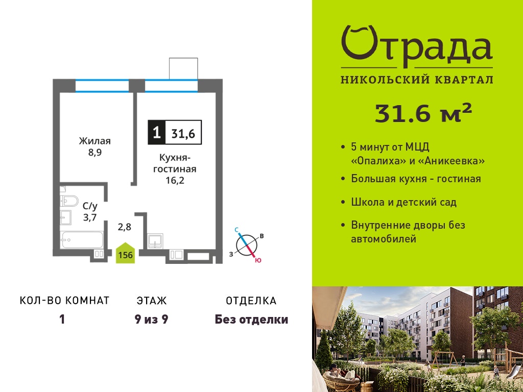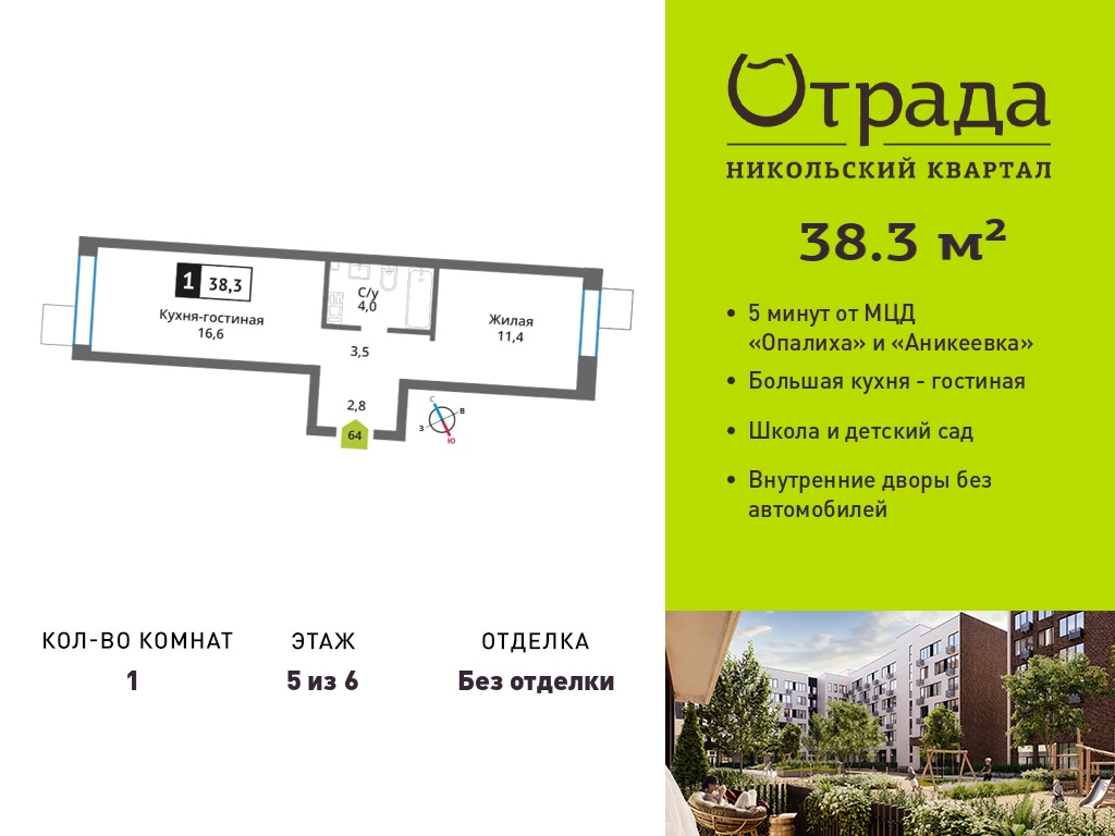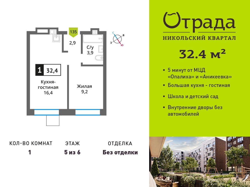 Евро однокомнатные квартиры в Никольский квартал Отрада