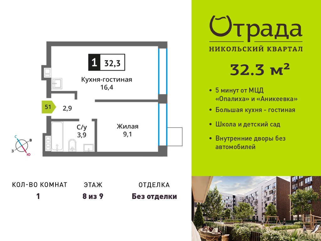Евро однокомнатные квартиры в Никольский квартал Отрада - страница 2