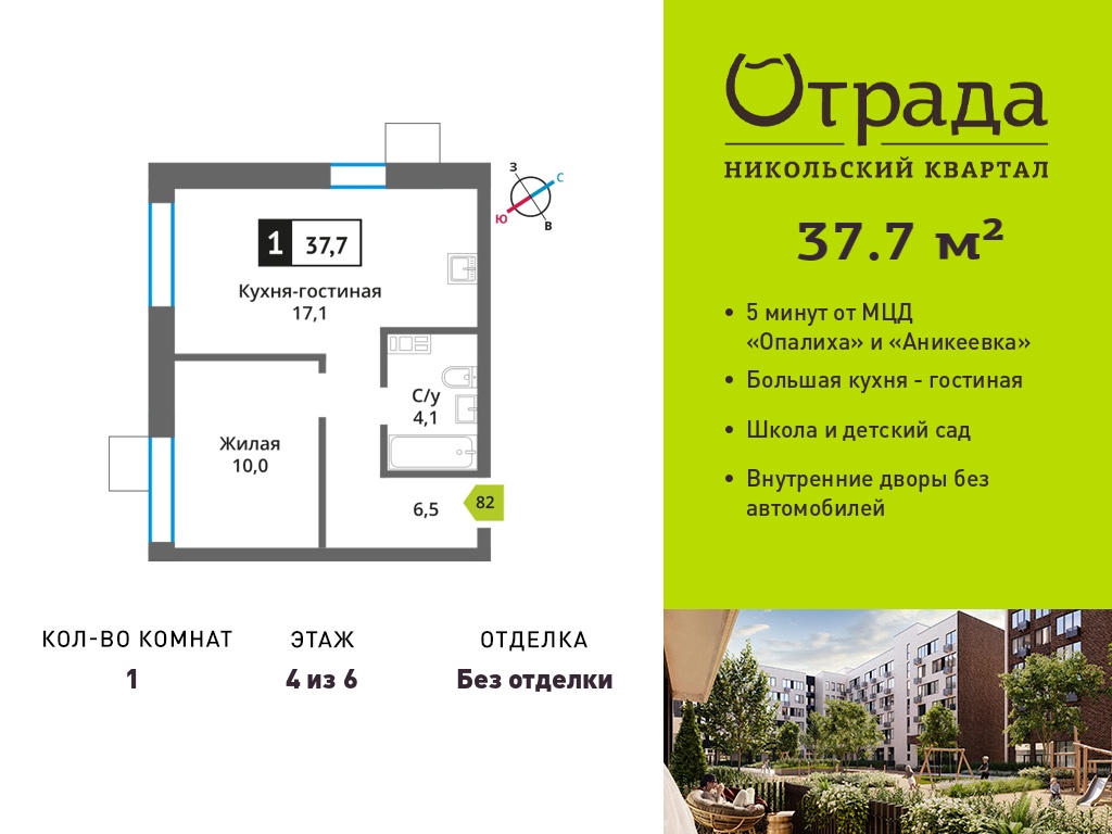 Евро однокомнатные квартиры в Никольский квартал Отрада