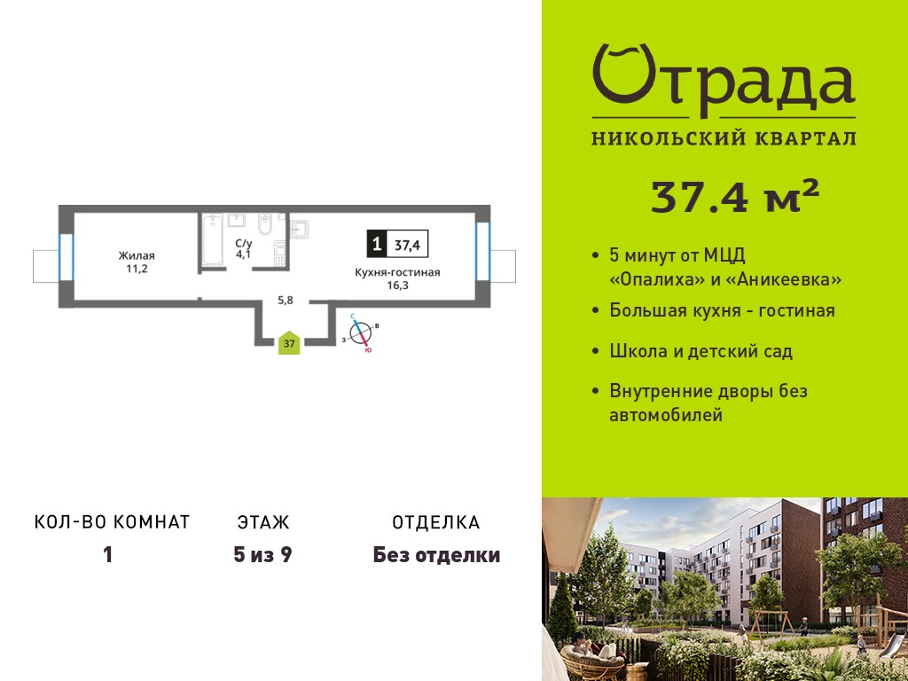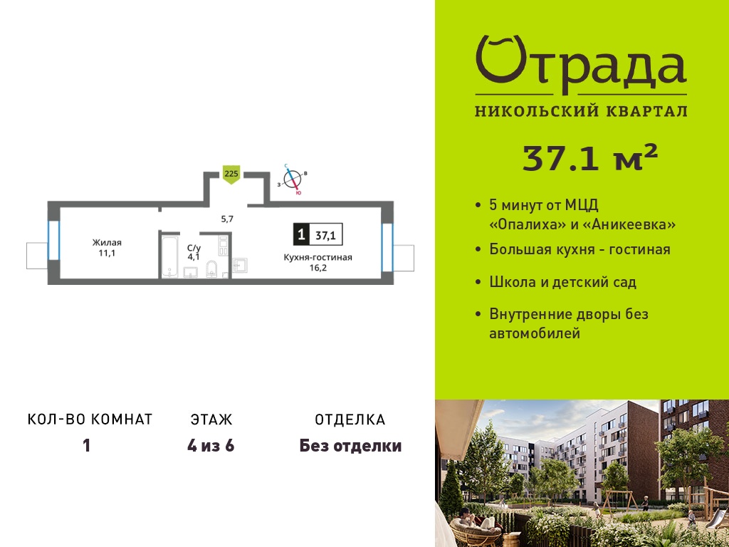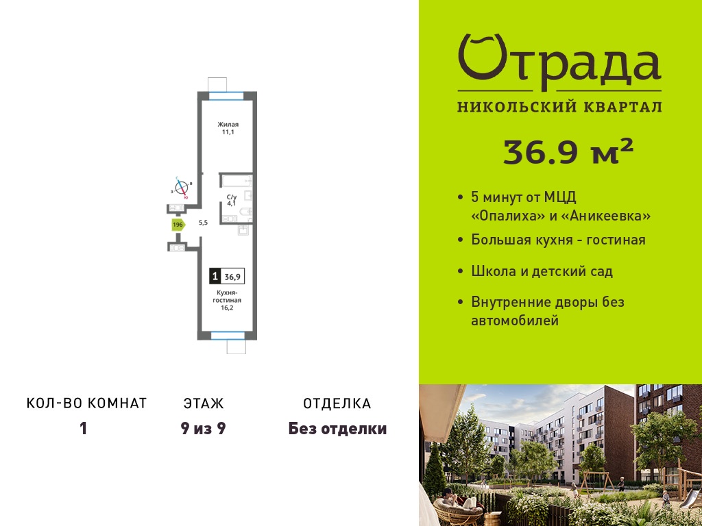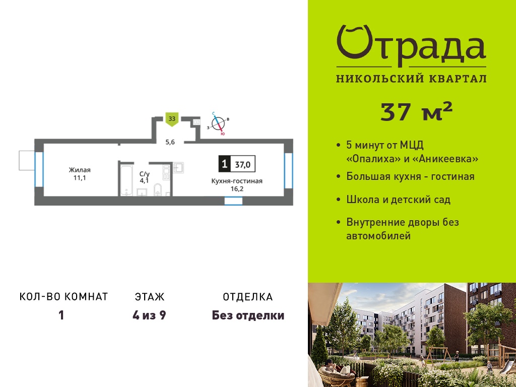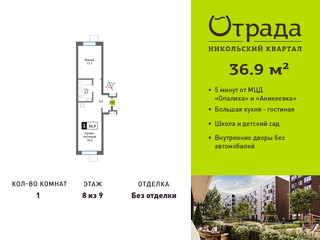 Евро однокомнатные квартиры в Никольский квартал Отрада