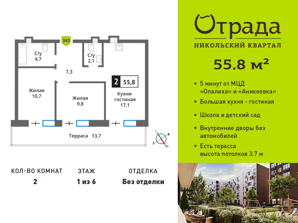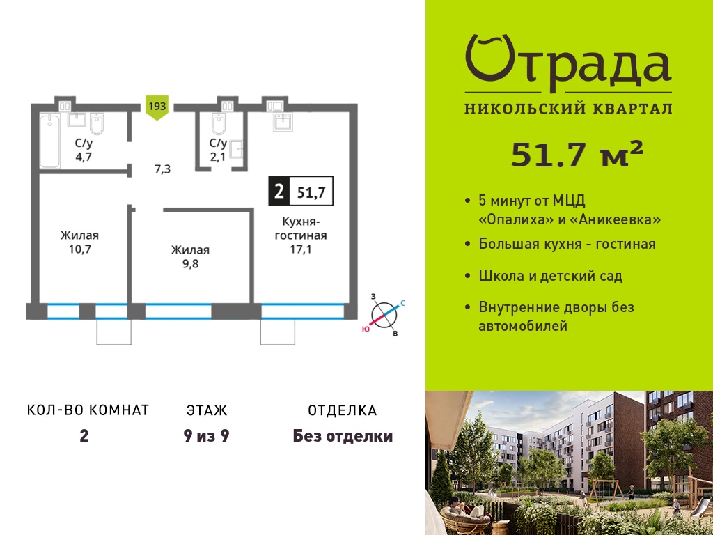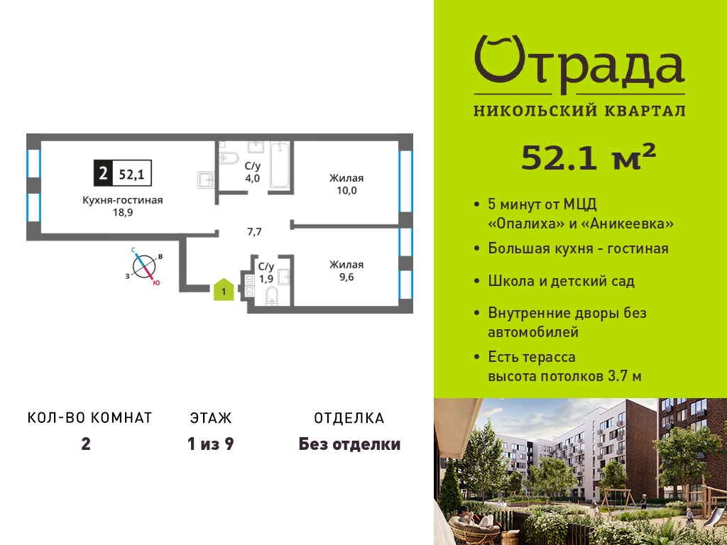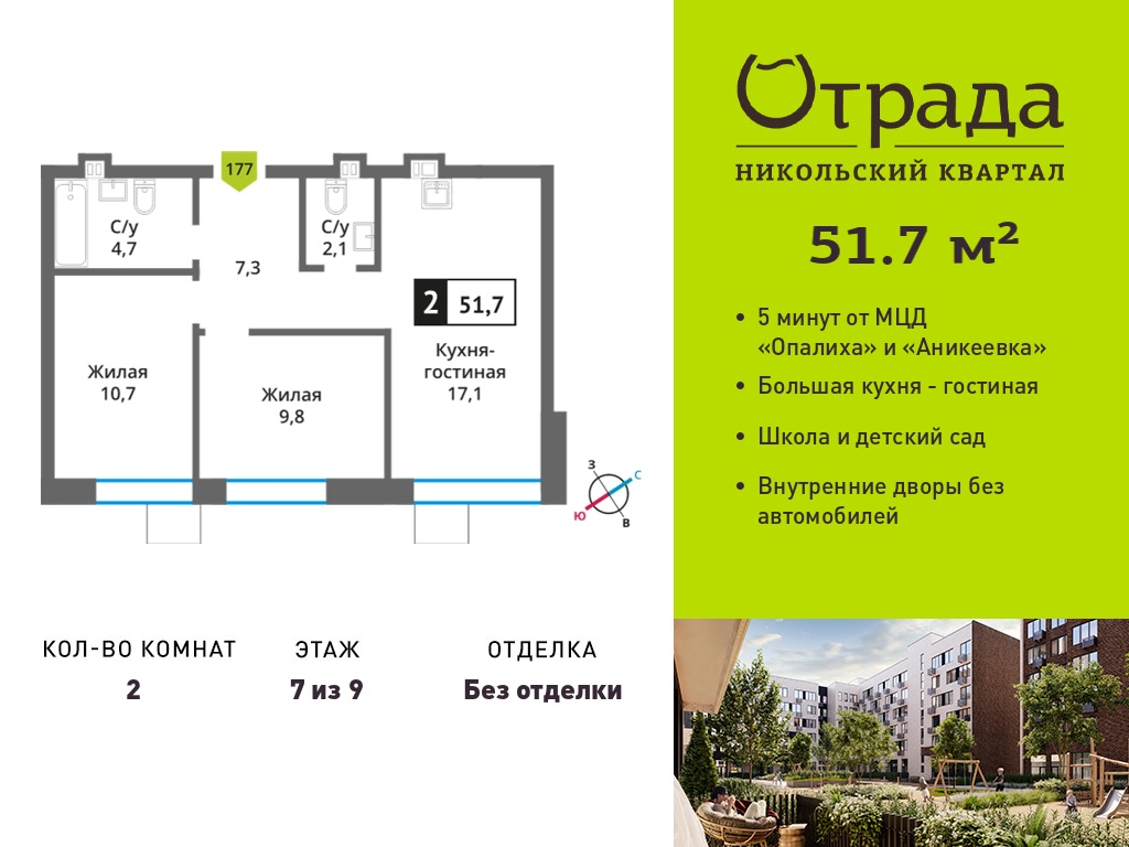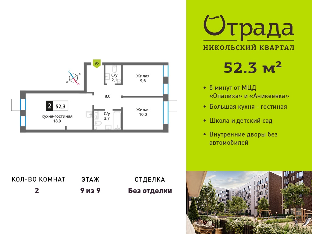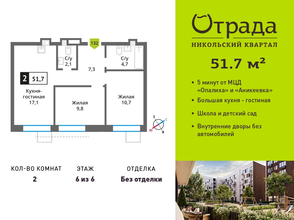 Евро двухкомнатные квартиры в Никольский квартал Отрада