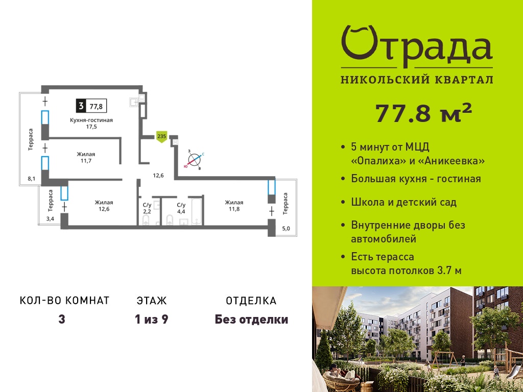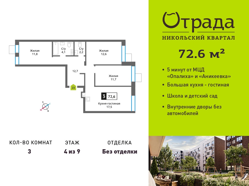 Евро трехкомнатные квартиры в Никольский квартал Отрада