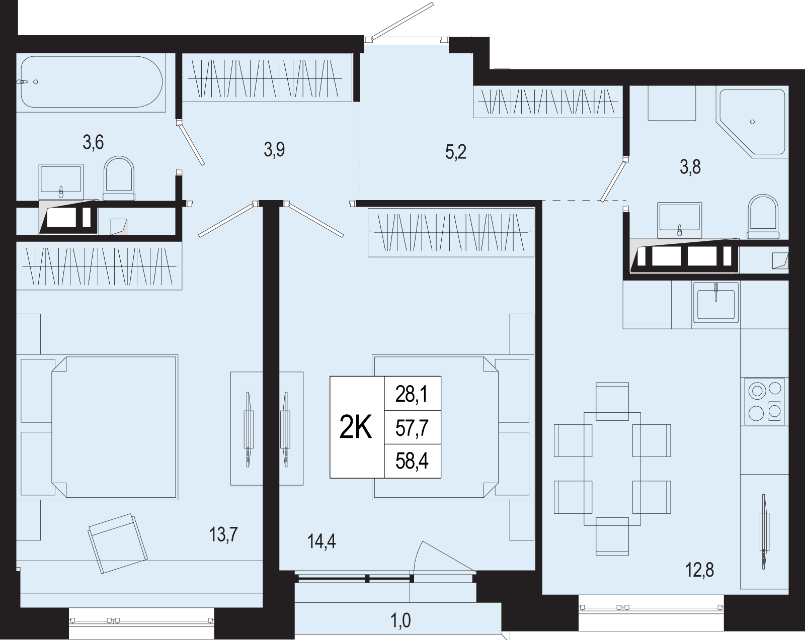 Двухкомнатные квартиры в ЖК «Новая Щербинка»