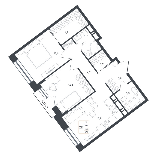 Двухкомнатные квартиры в ЖК «Новая Щербинка»