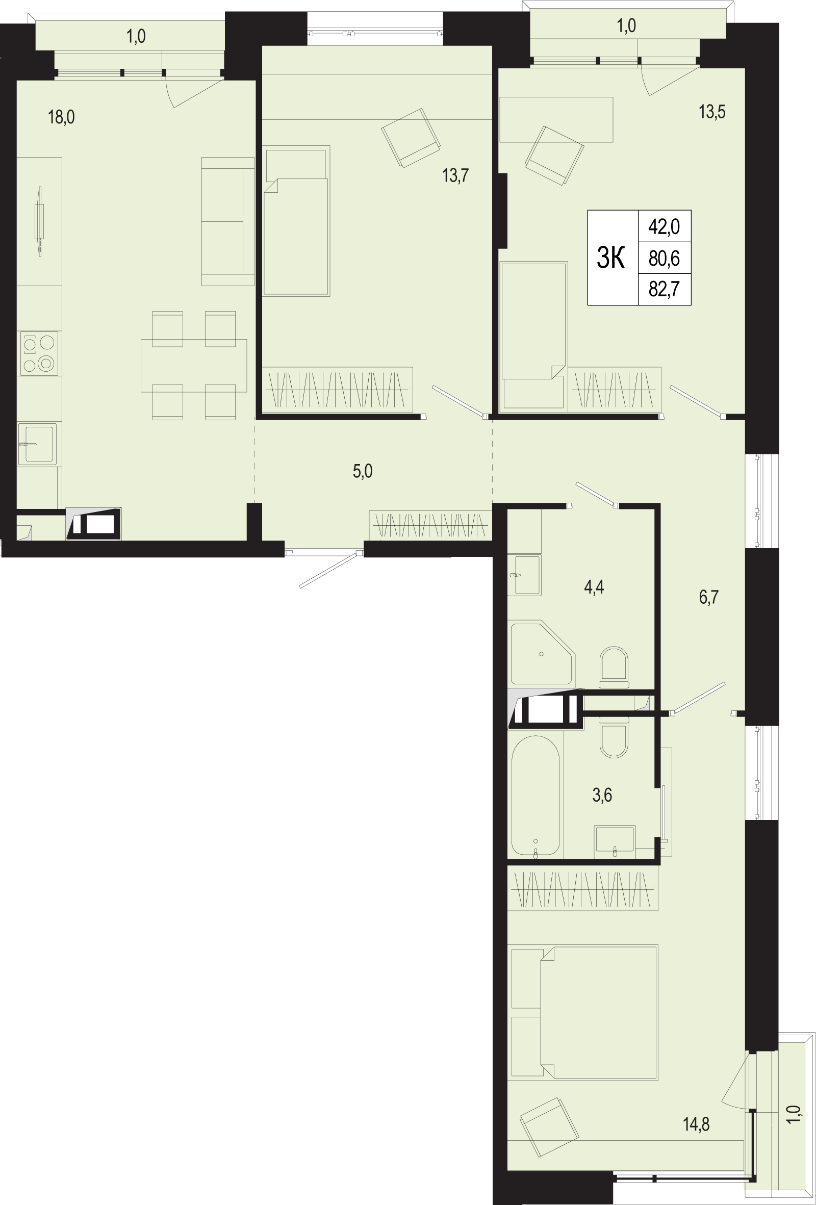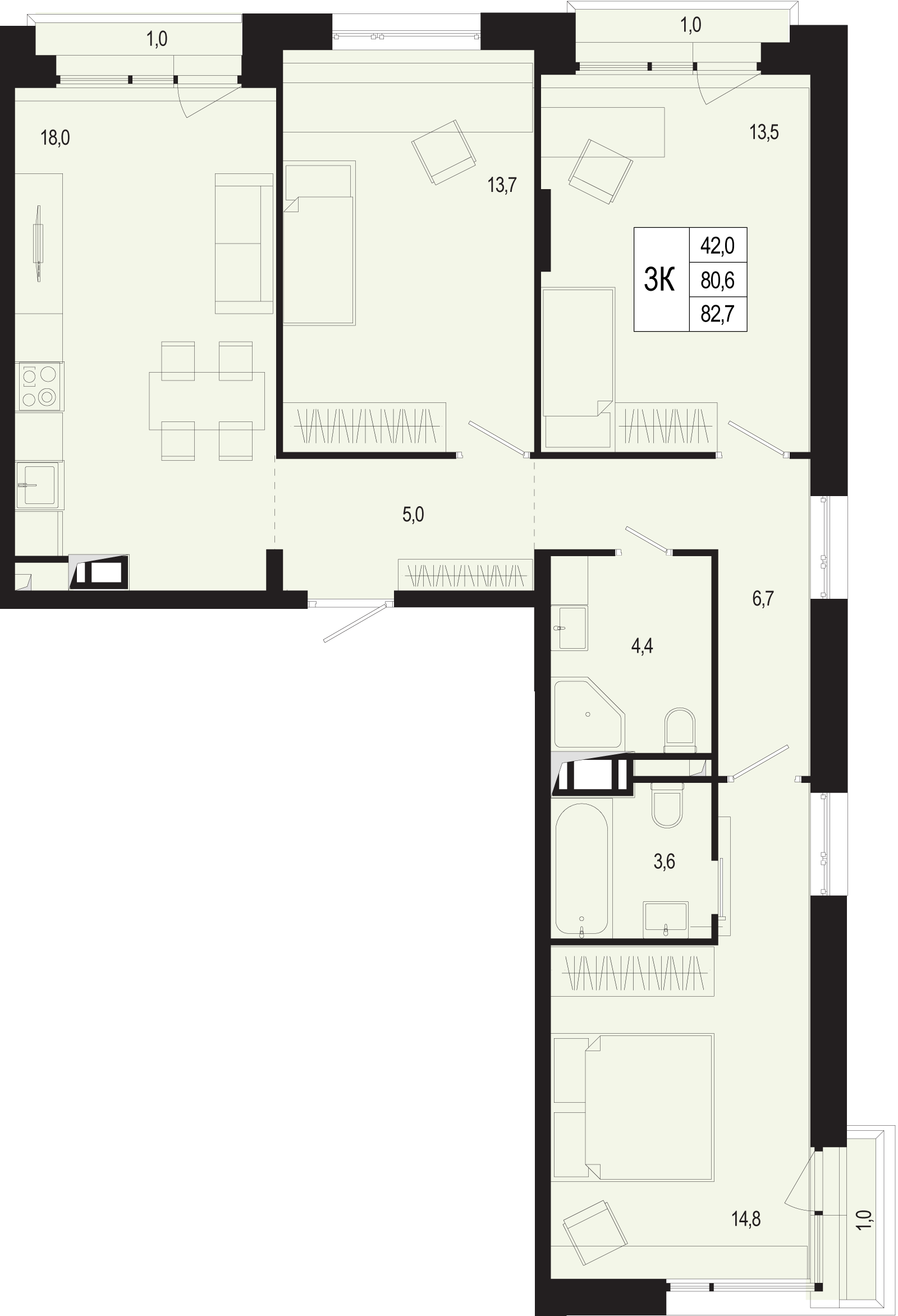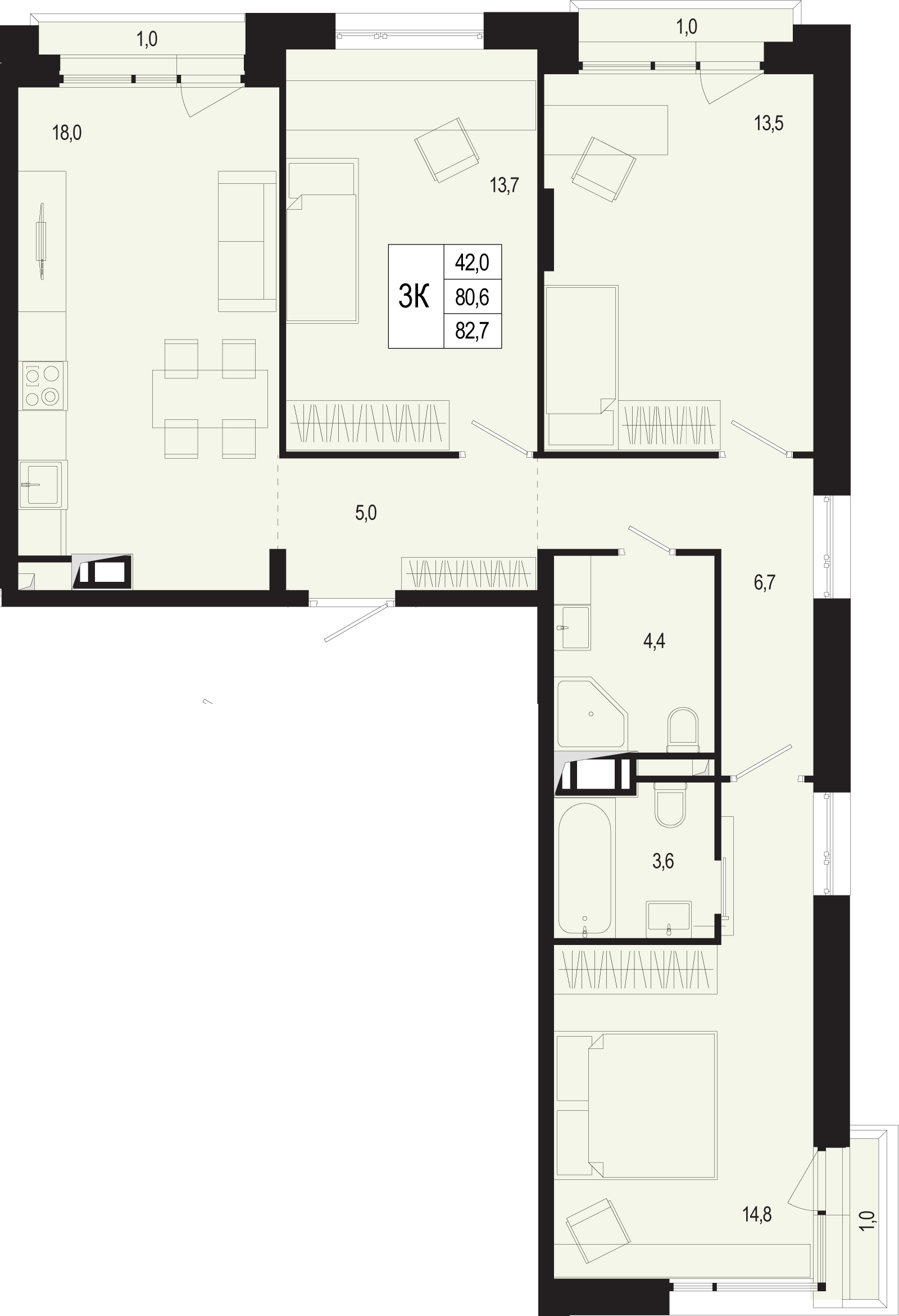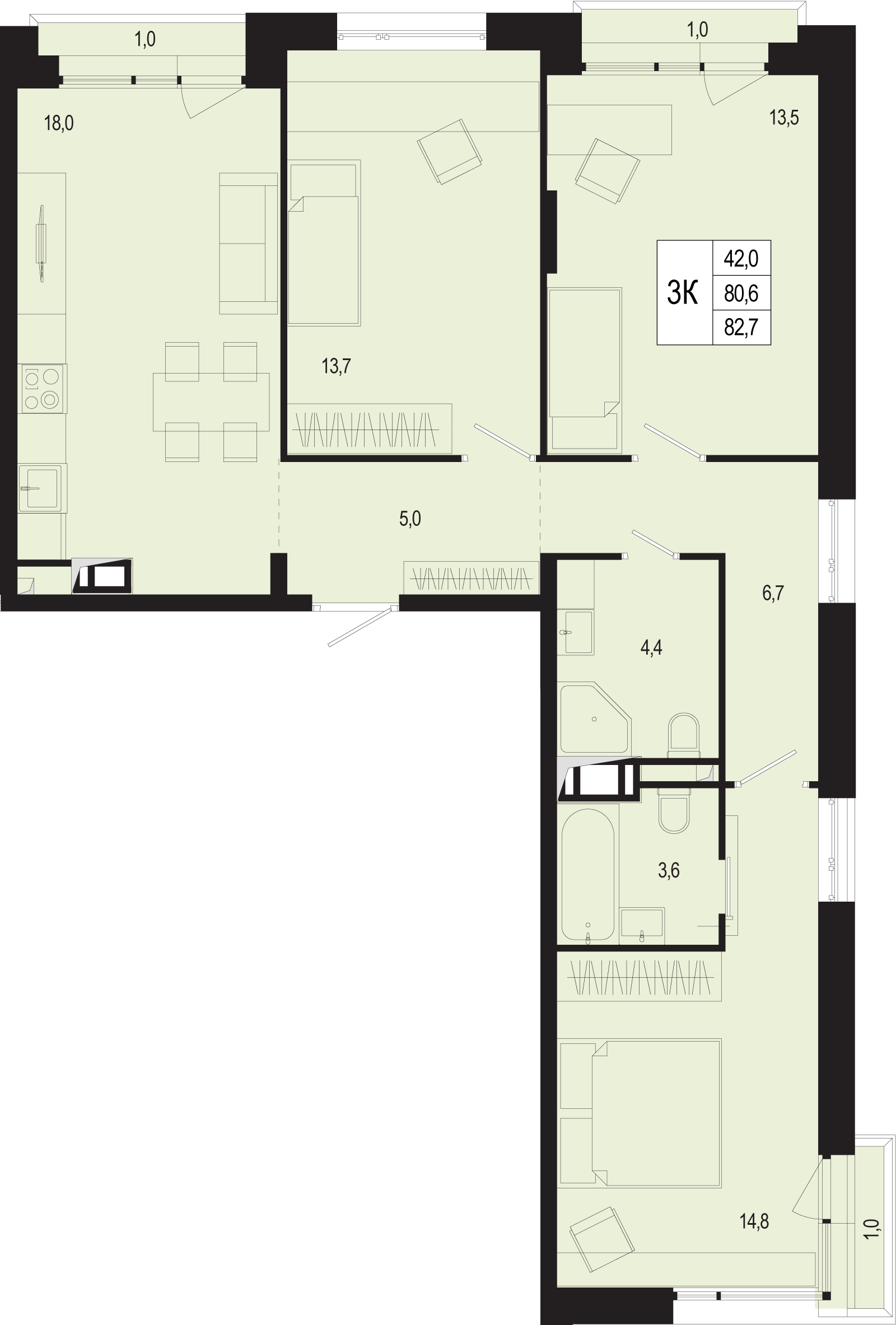 Трехкомнатные квартиры в ЖК «Новая Щербинка»