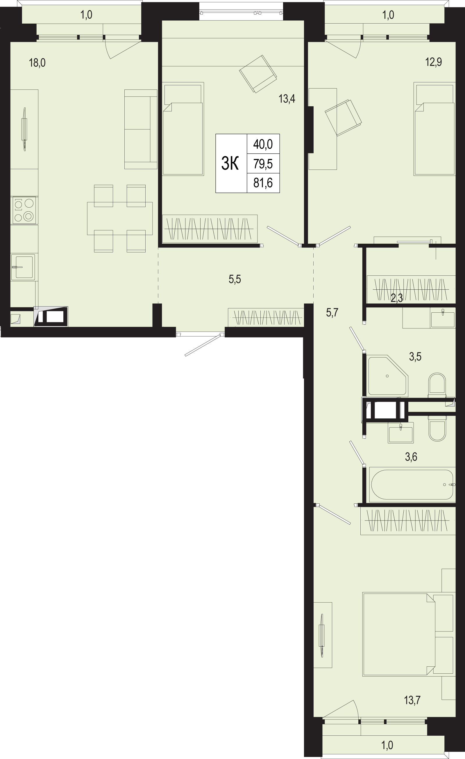 Трехкомнатные квартиры в ЖК «Новая Щербинка»