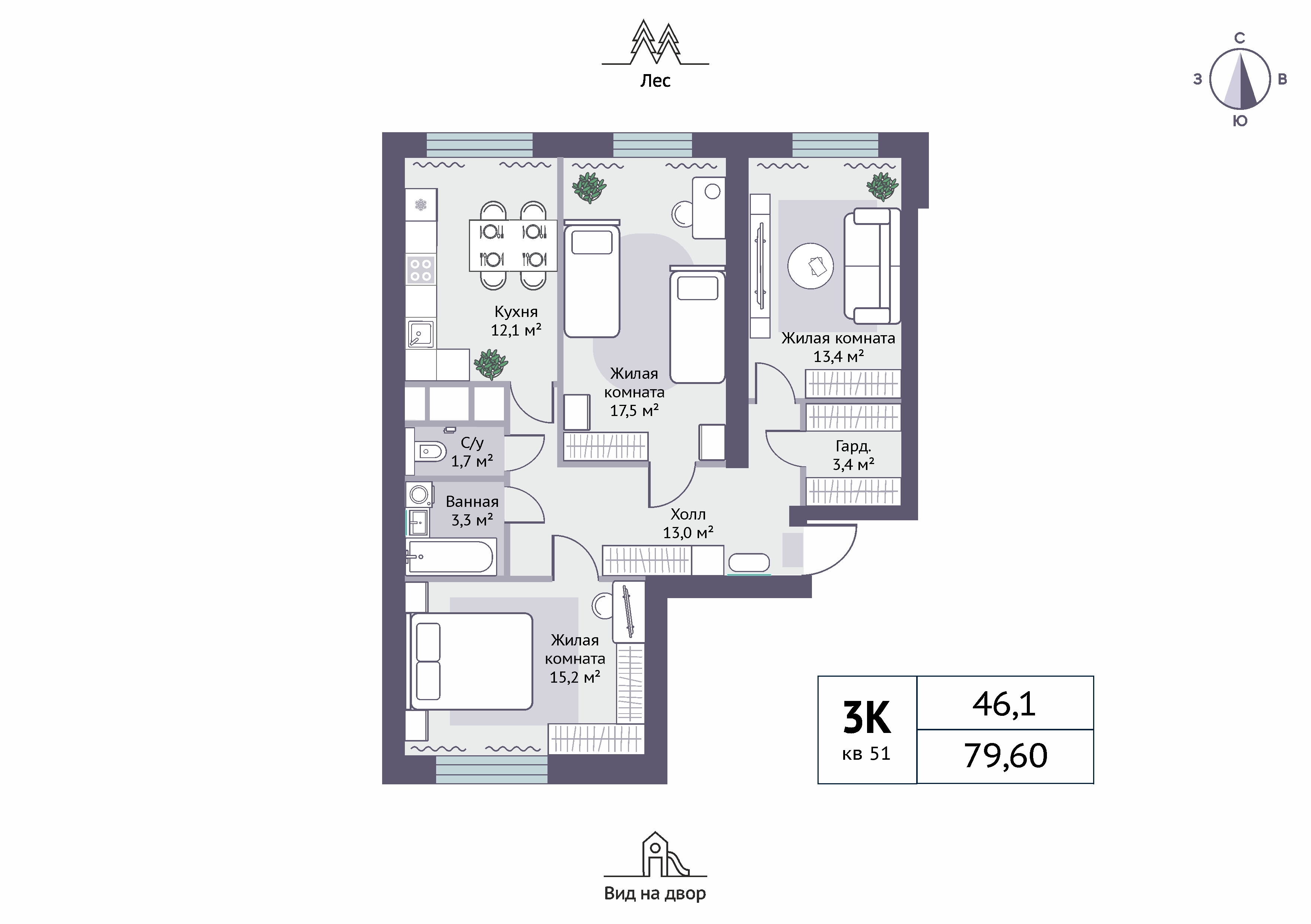 Трехкомнатные квартиры в ЖК Новое Замитино