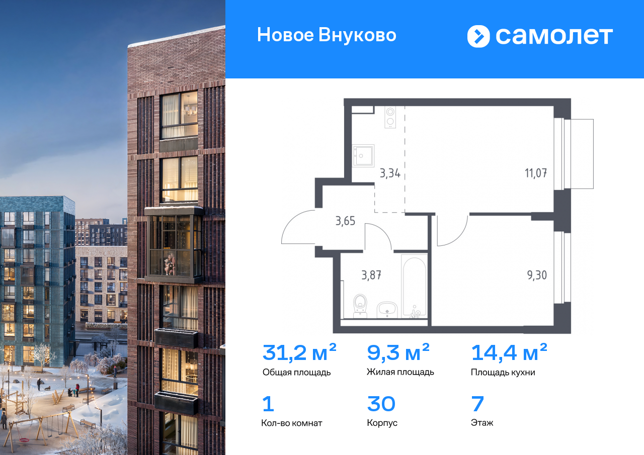 Однокомнатные квартиры в ЖК «Новое Внуково»