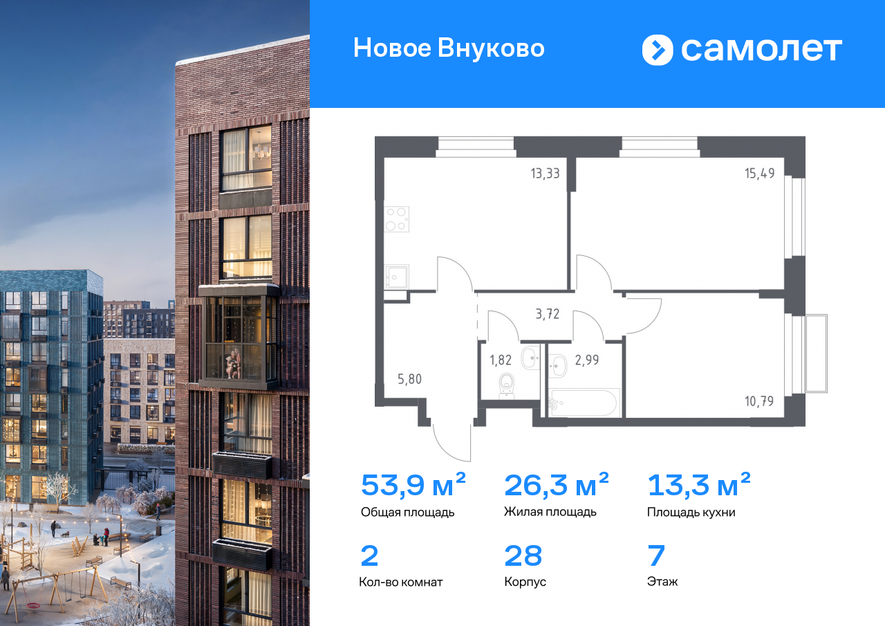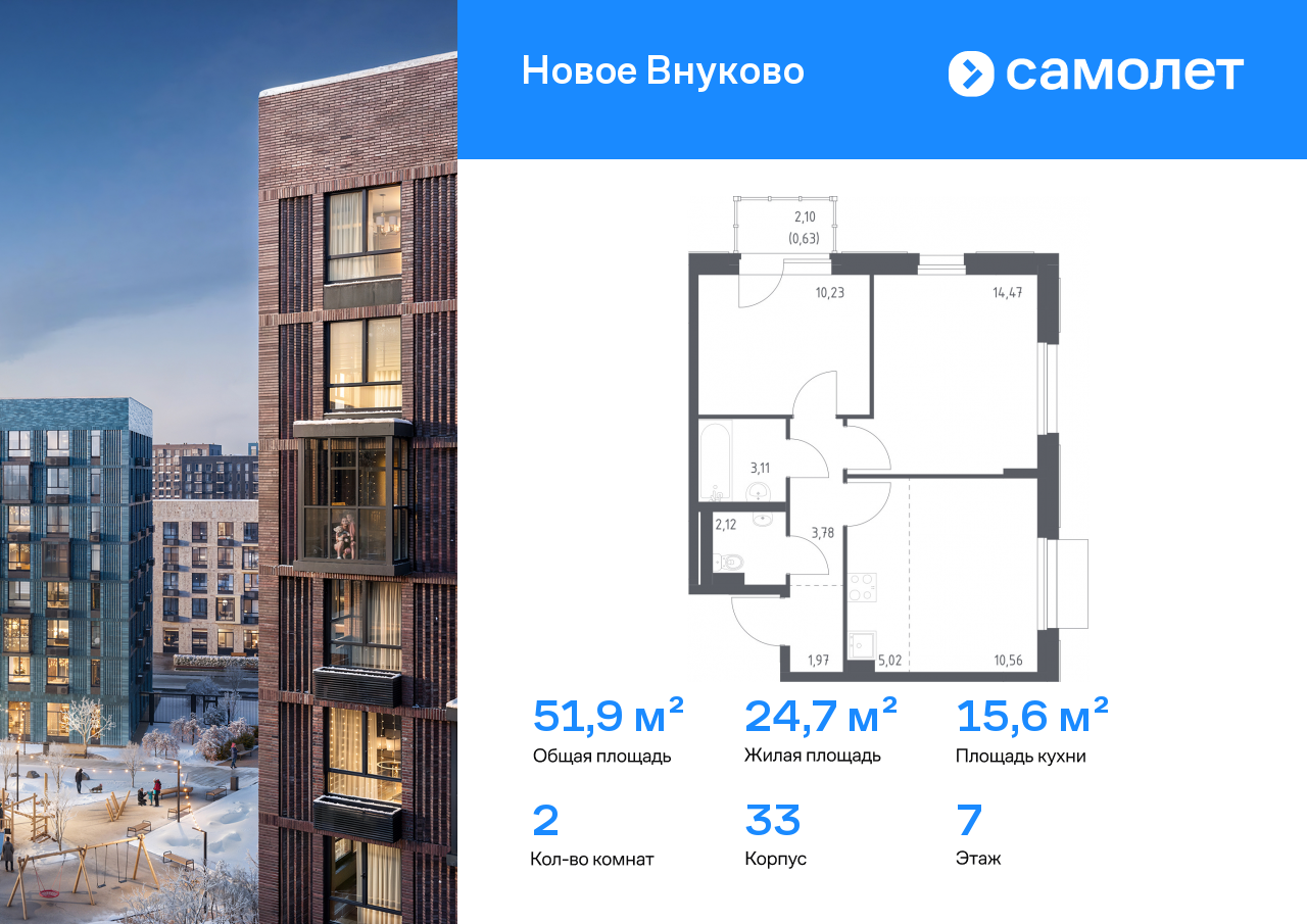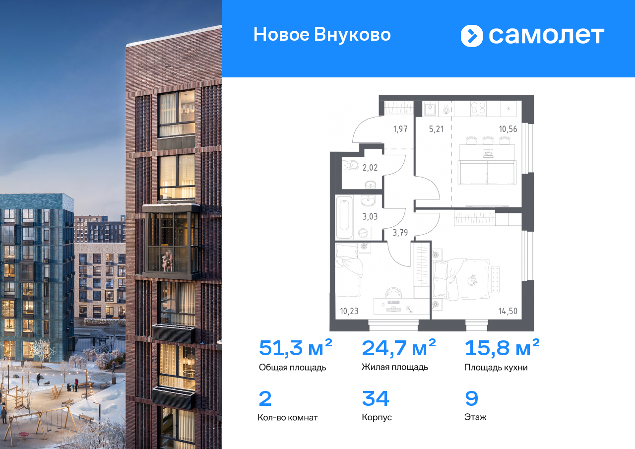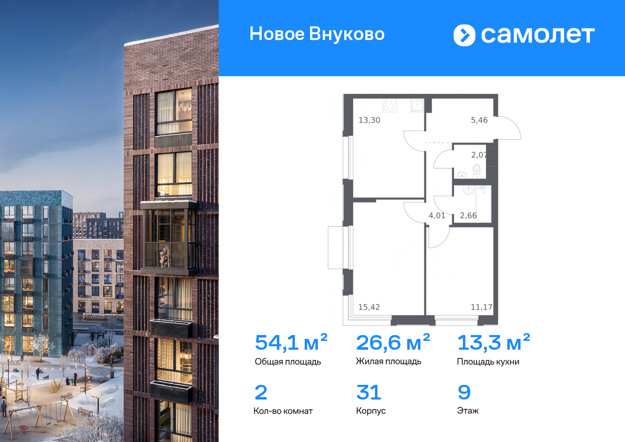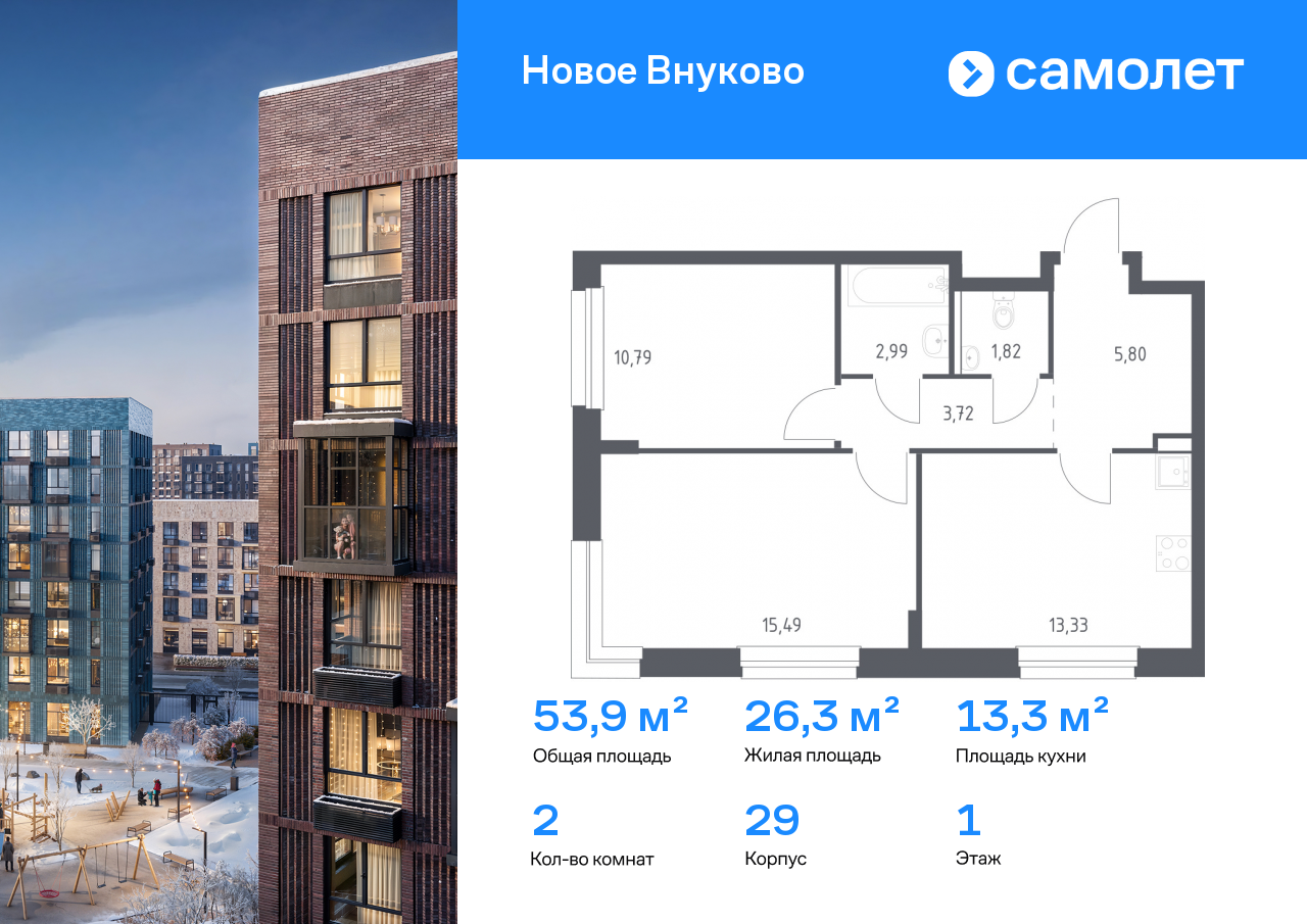 Двухкомнатные квартиры в ЖК «Новое Внуково»