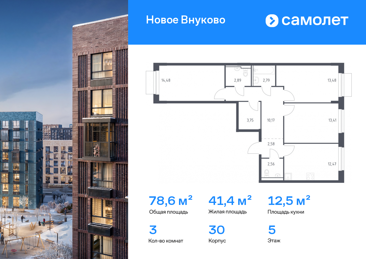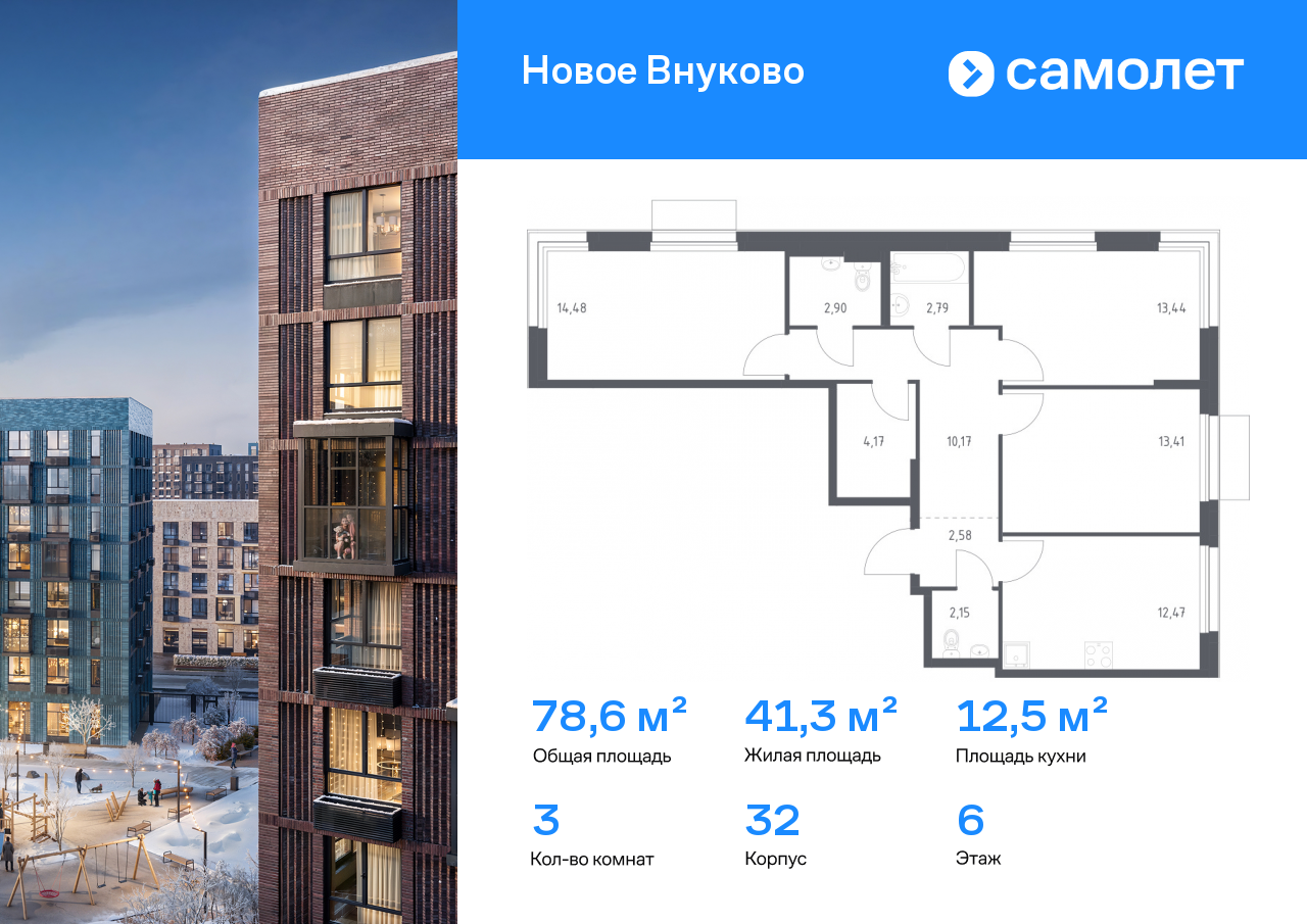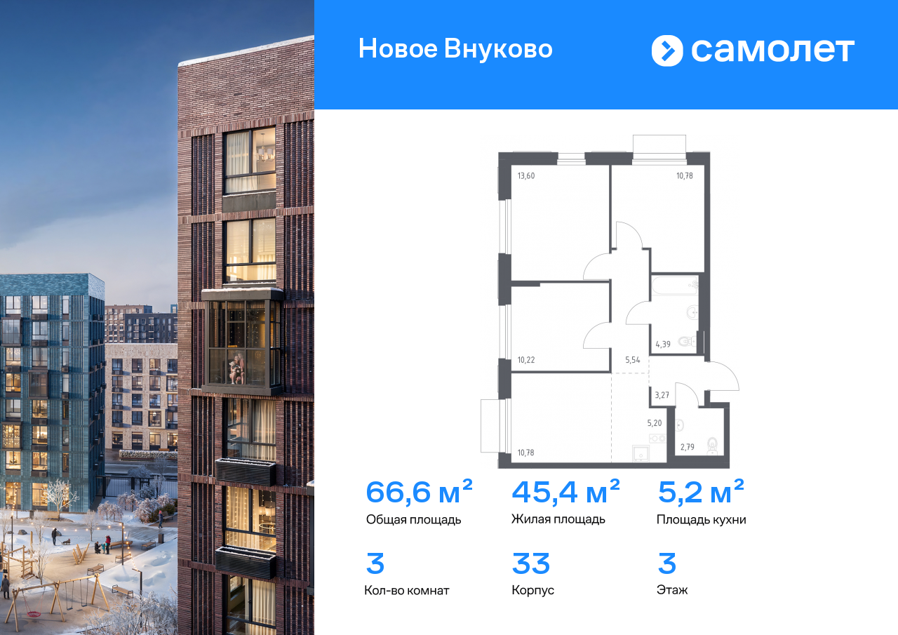 Трехкомнатные квартиры в ЖК «Новое Внуково»