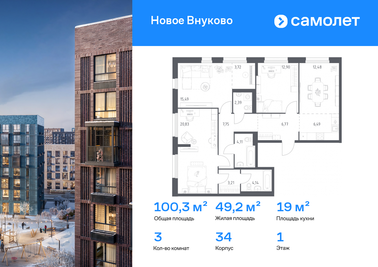Евро трехкомнатные квартиры в ЖК «Новое Внуково»