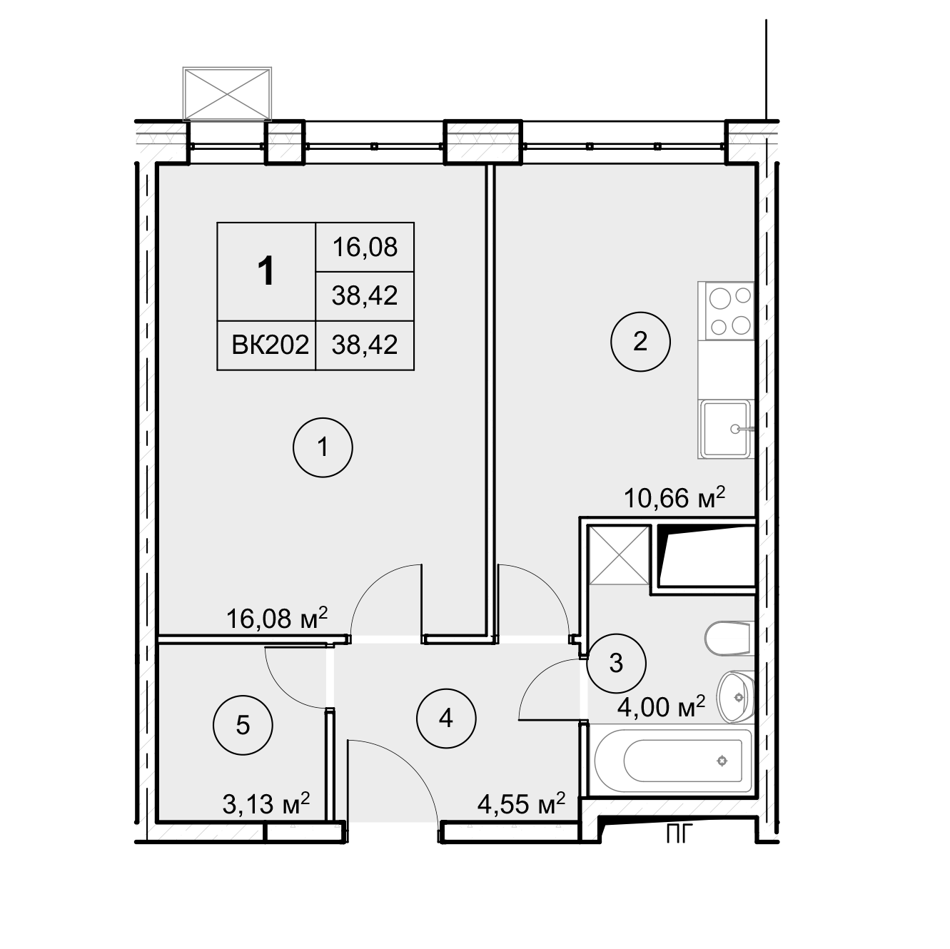 1-комнатная (38.42м2)