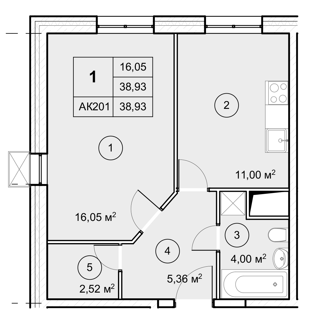 1-комнатная (38.9м2)