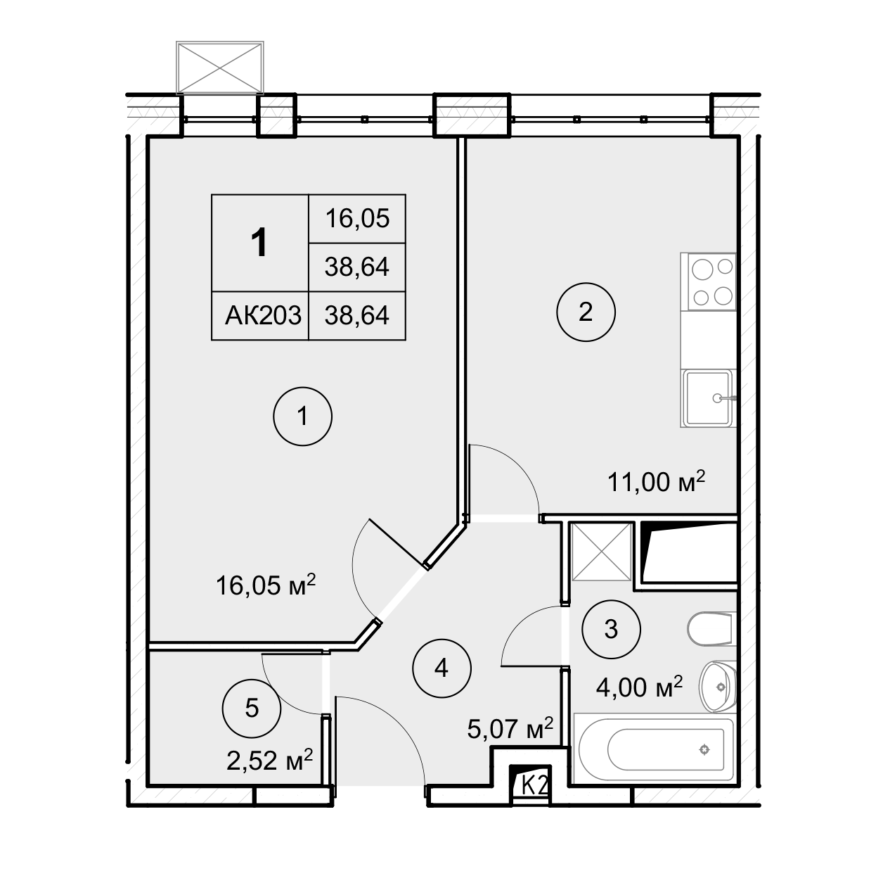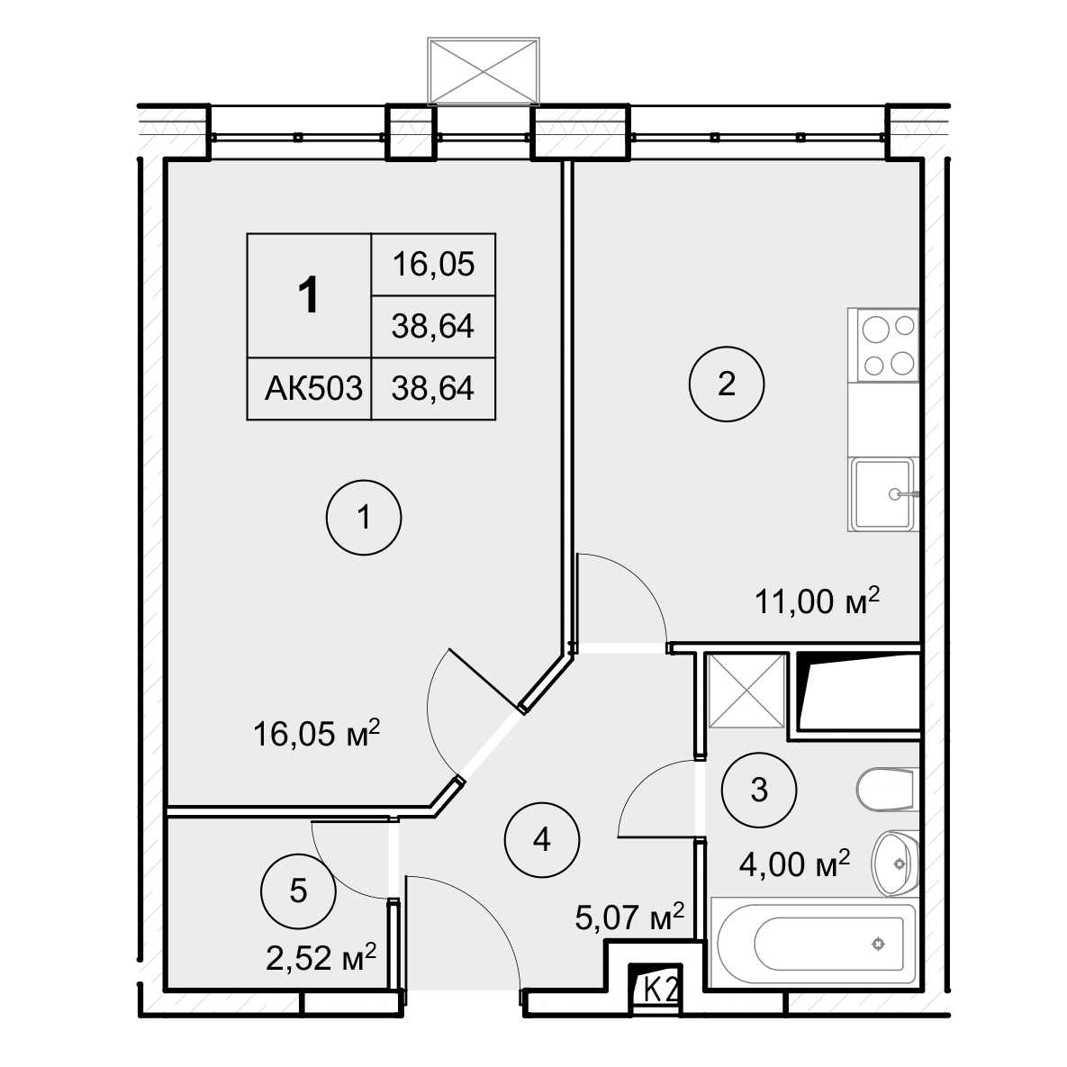 1-комнатная (38.64м2)
