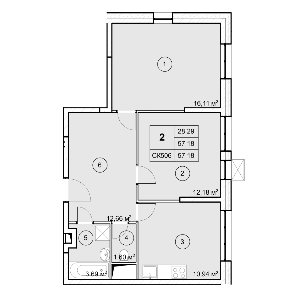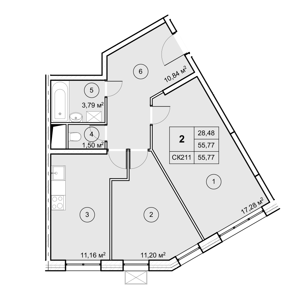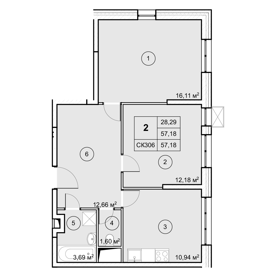 2-комнатная (57.2м2)