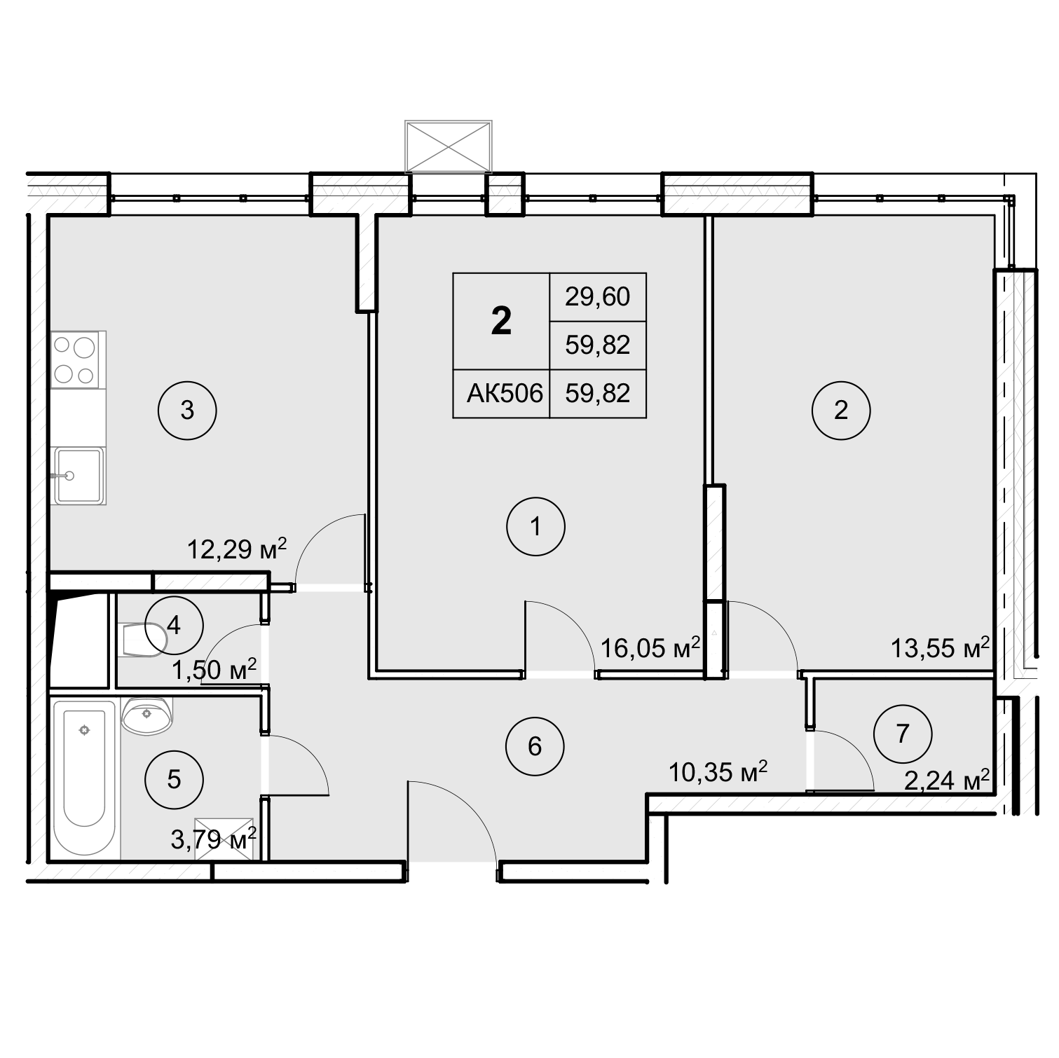 2-комнатная (59.7м2)