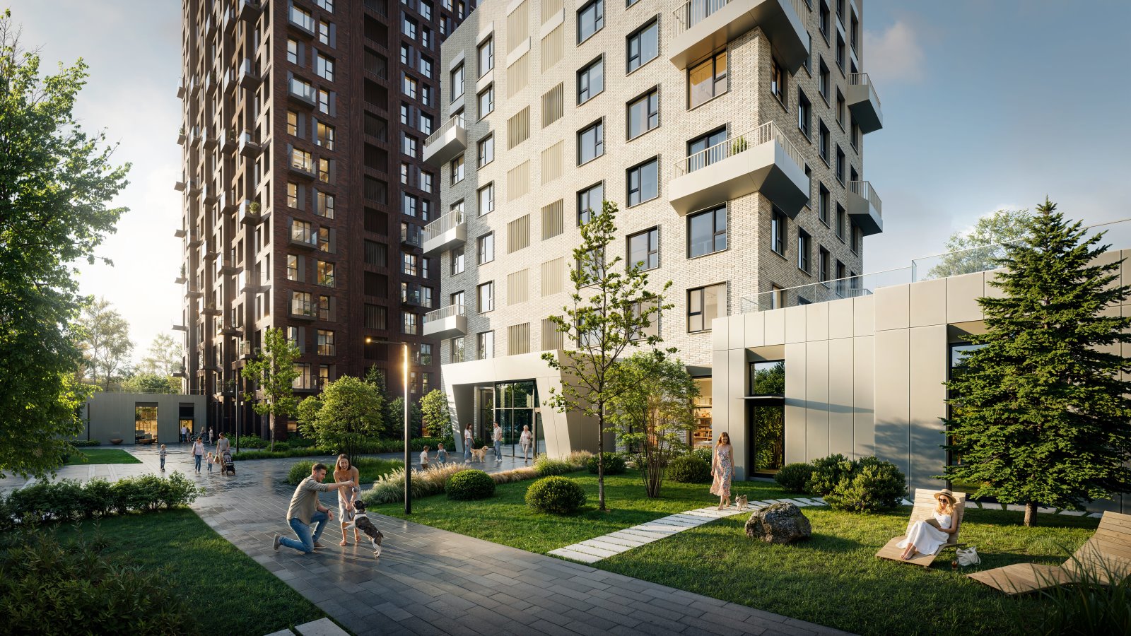 В проекте появится детский сад на 350 мест, школа для 800 учеников и современная поликлиника. А ещё четырёхэтажный физкультурный комплекс с бассейном и деловое пространство ЛАВИН воркплейс с современными офисами, пространствами для работы и ритейлом.
