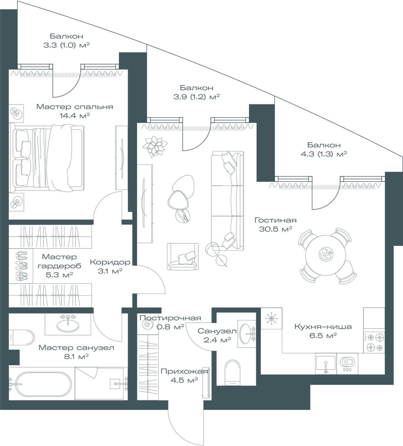 - Цена за м2 1 129 300 руб