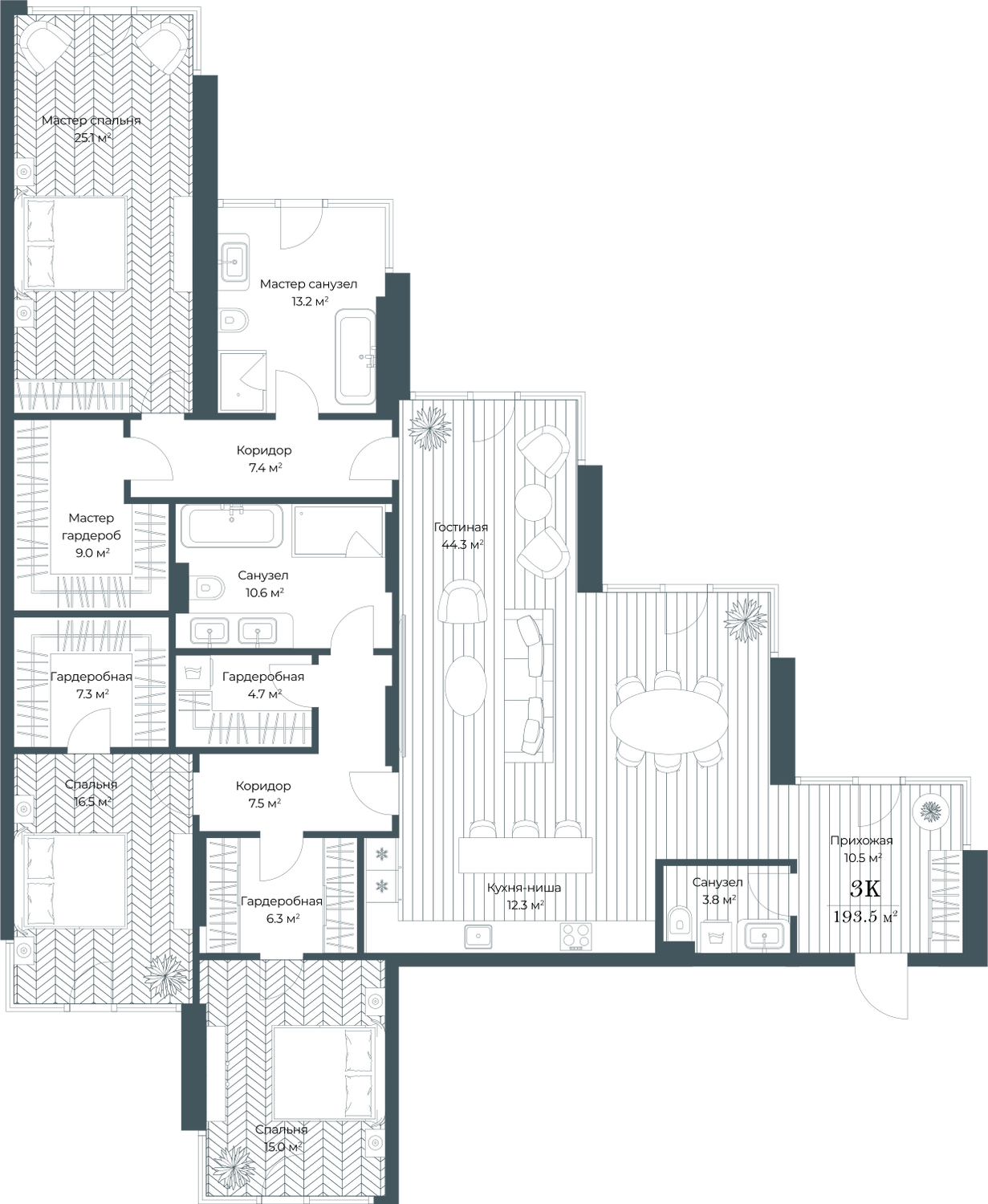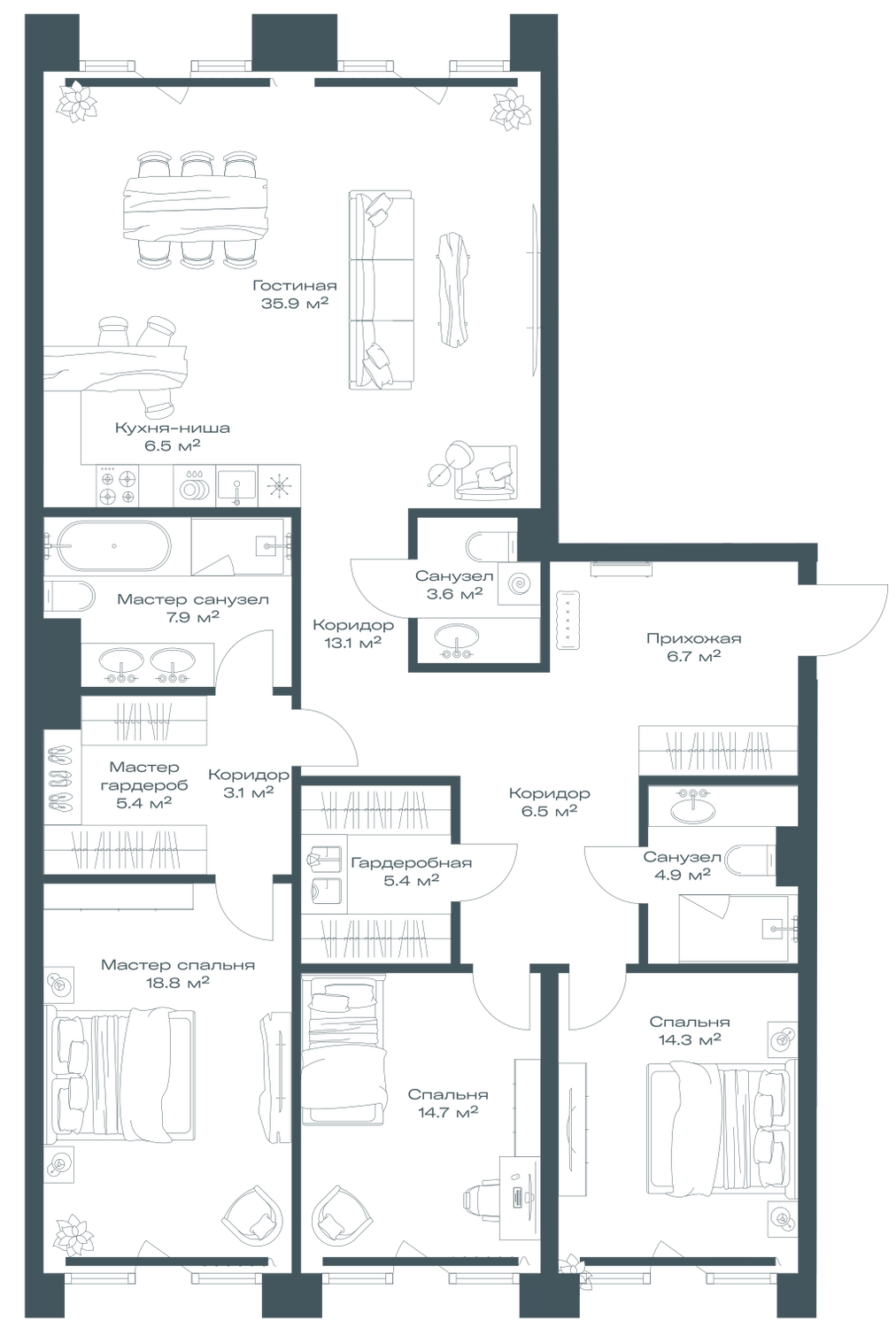 Трехкомнатные квартиры в ЖК OPUS (Опус)