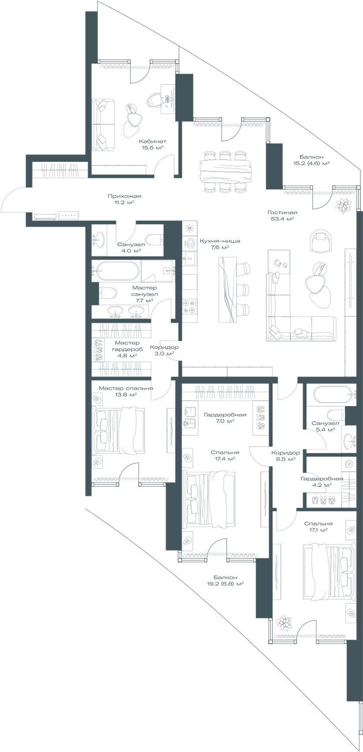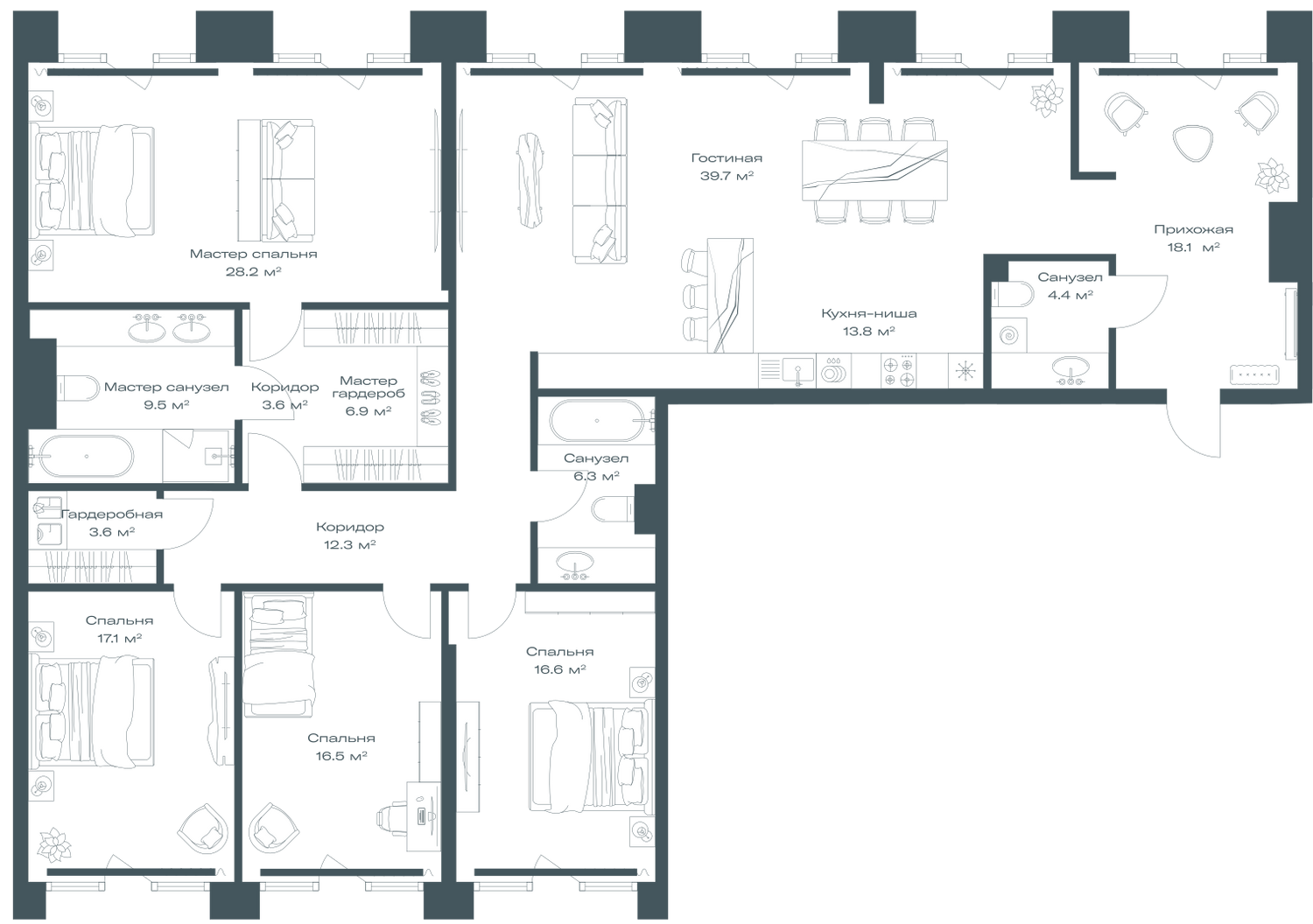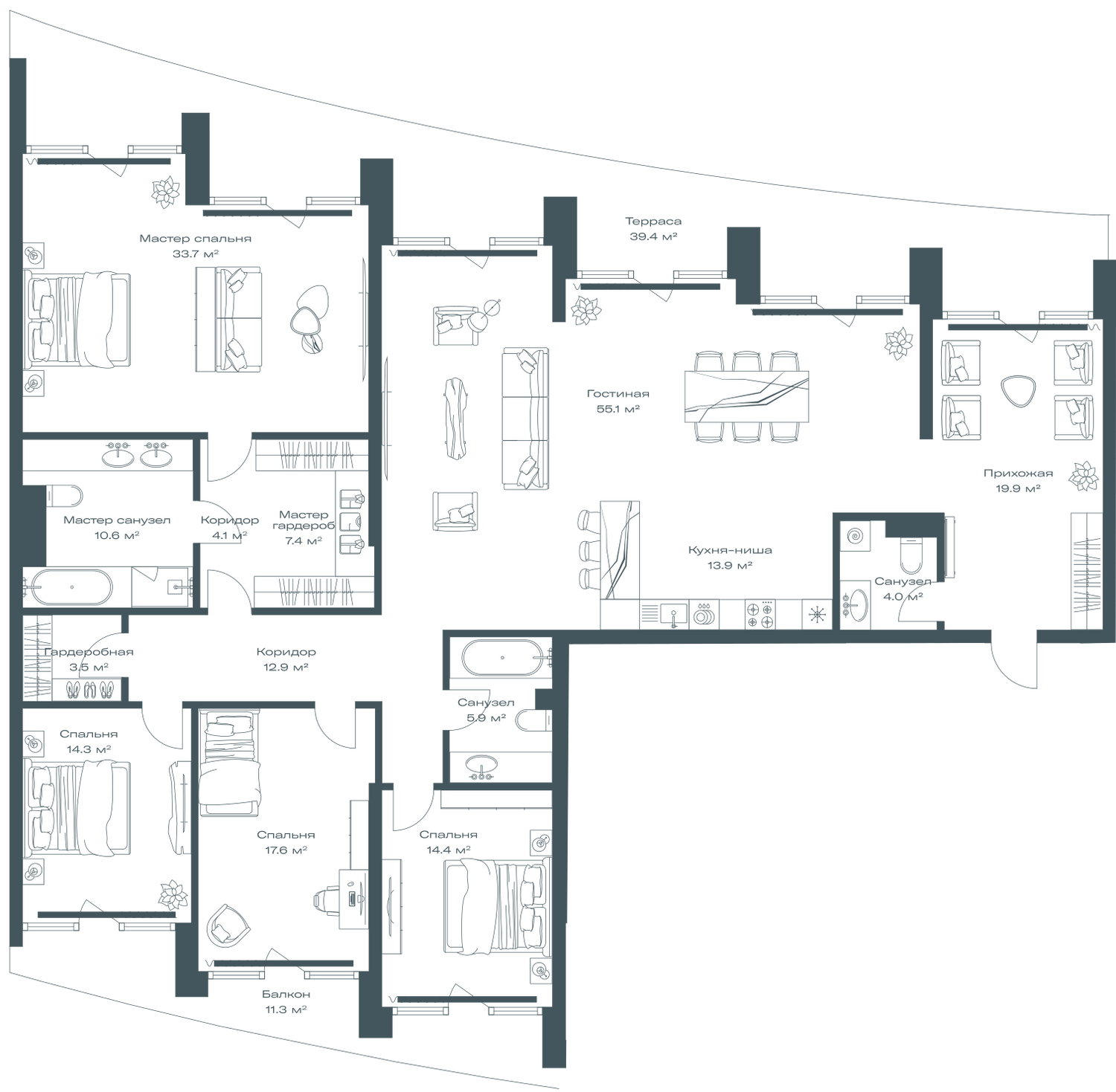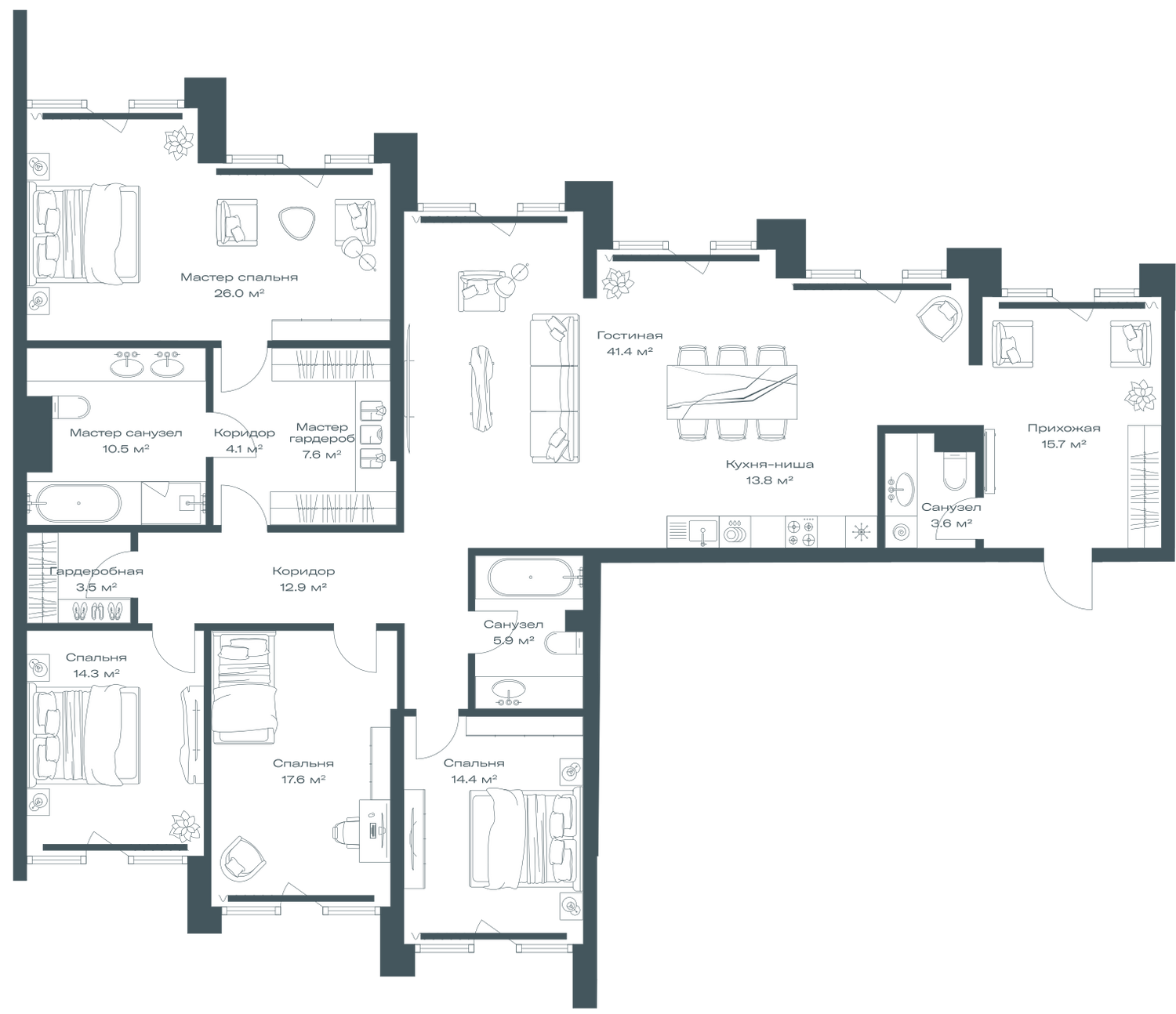 Четырехкомнатные квартиры в ЖК OPUS (Опус)