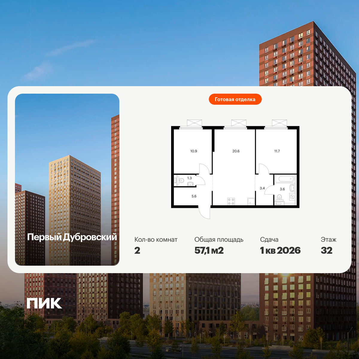 2-комнатная (57.1м2)