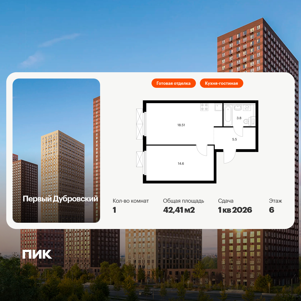 Евро однокомнатные квартиры в Первый Дубровский