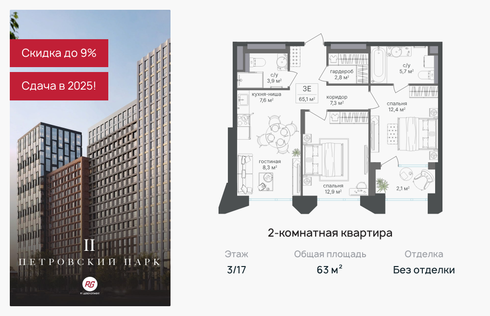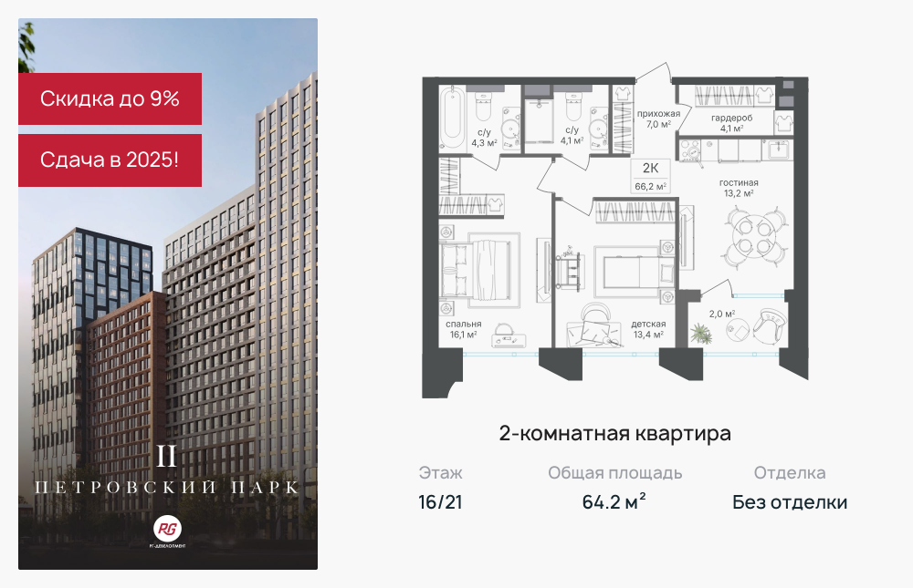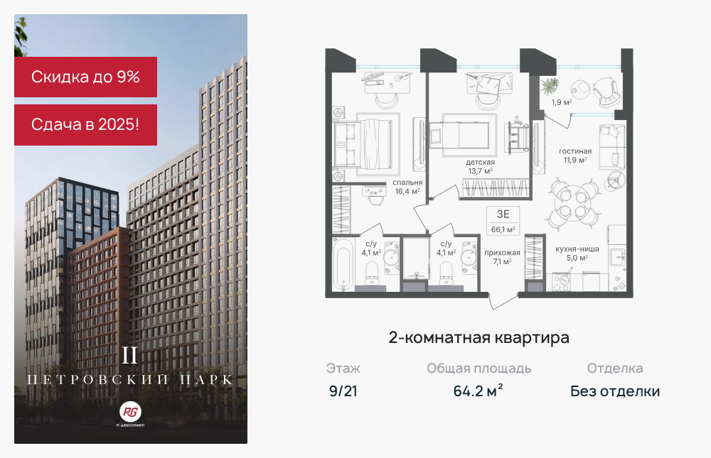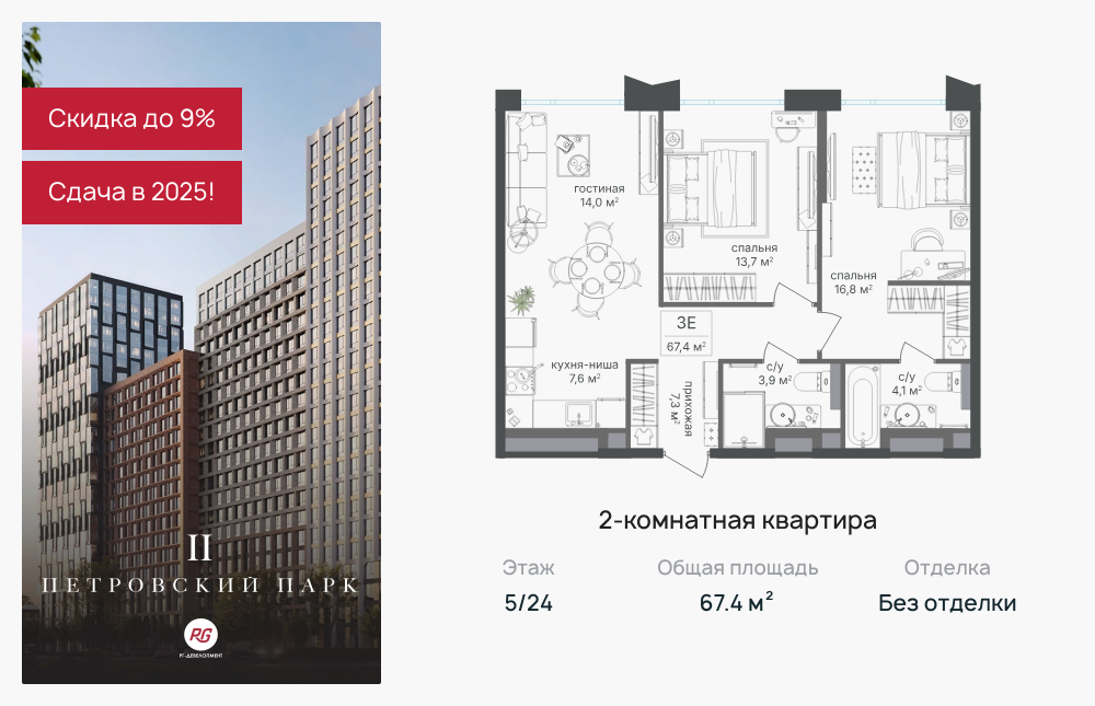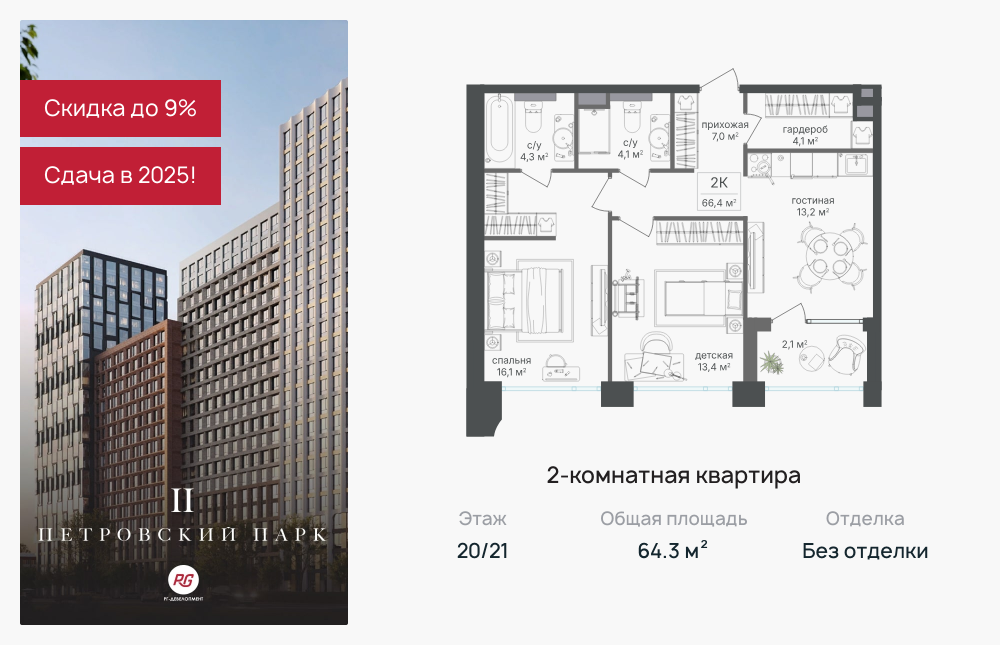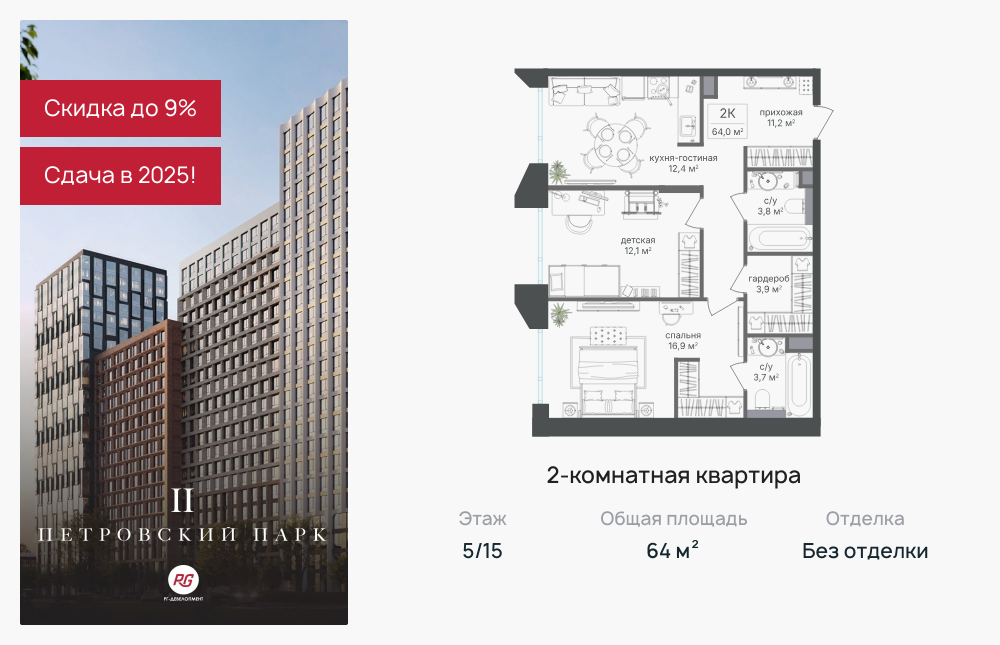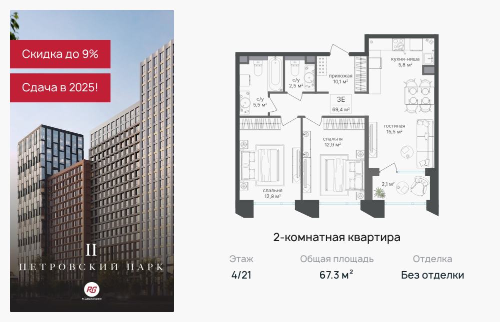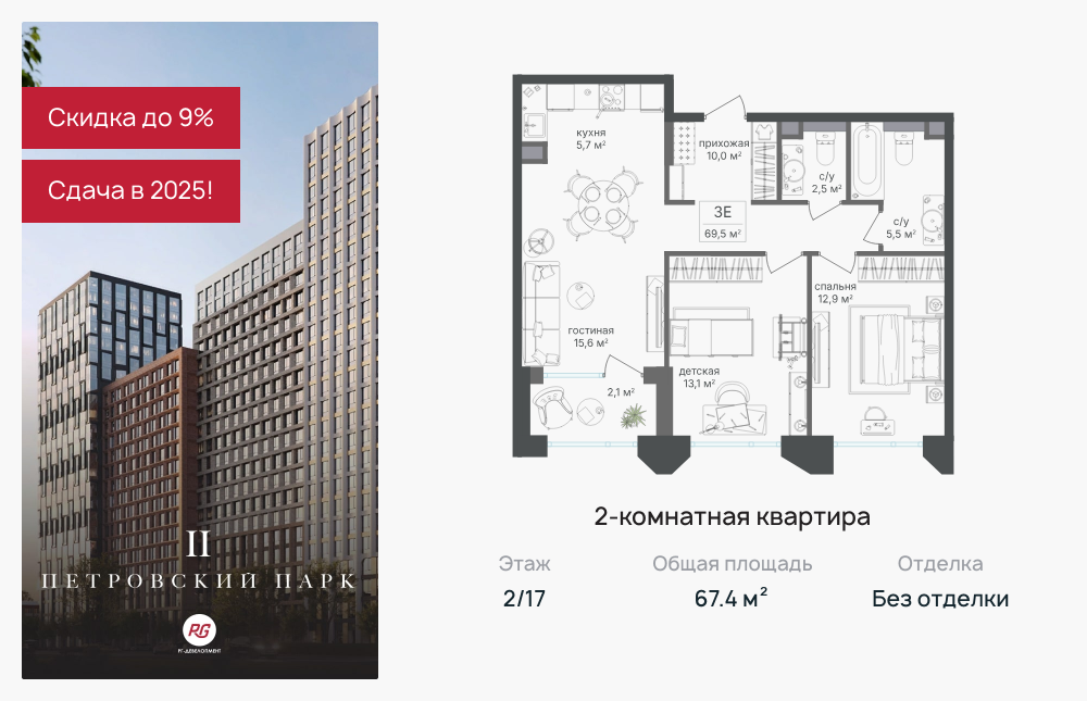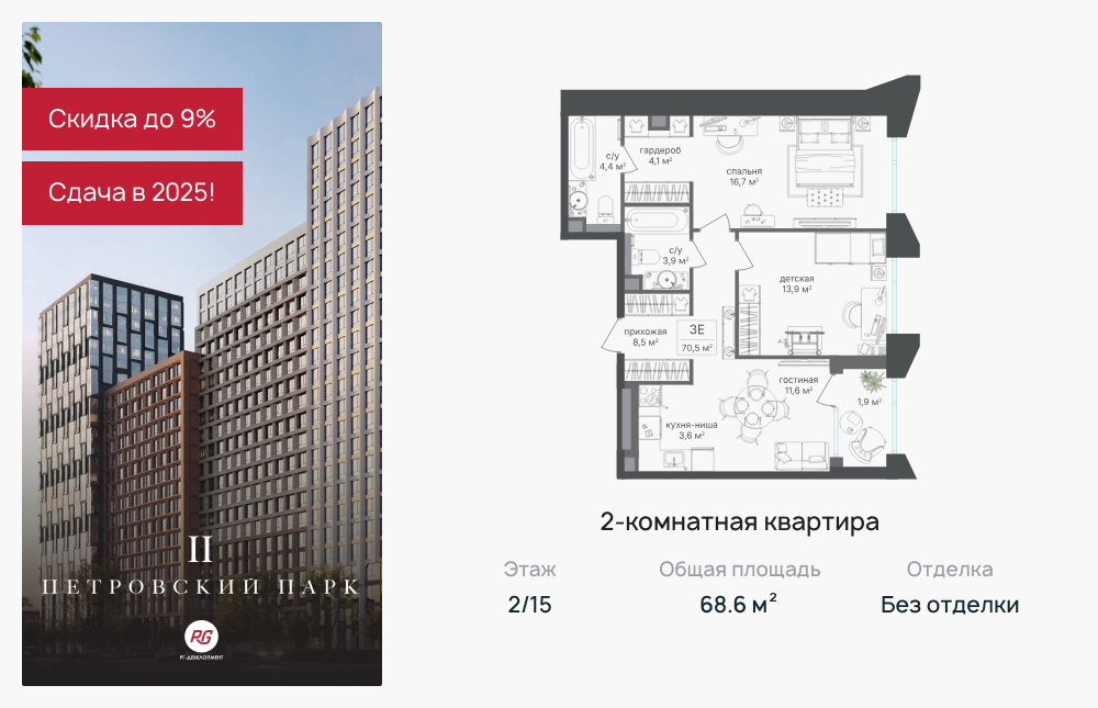 Двухкомнатные квартиры в ЖК «Петровский парк II»