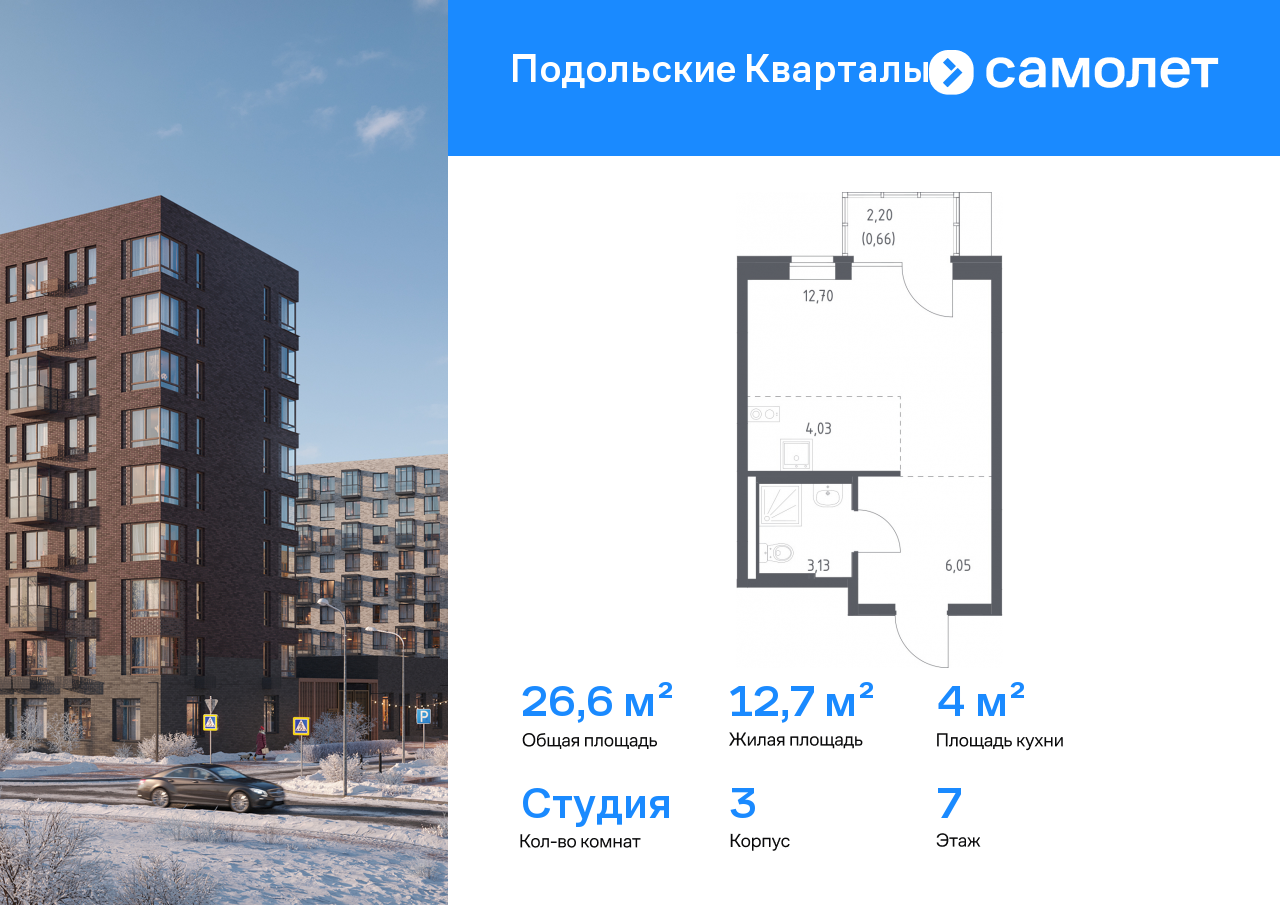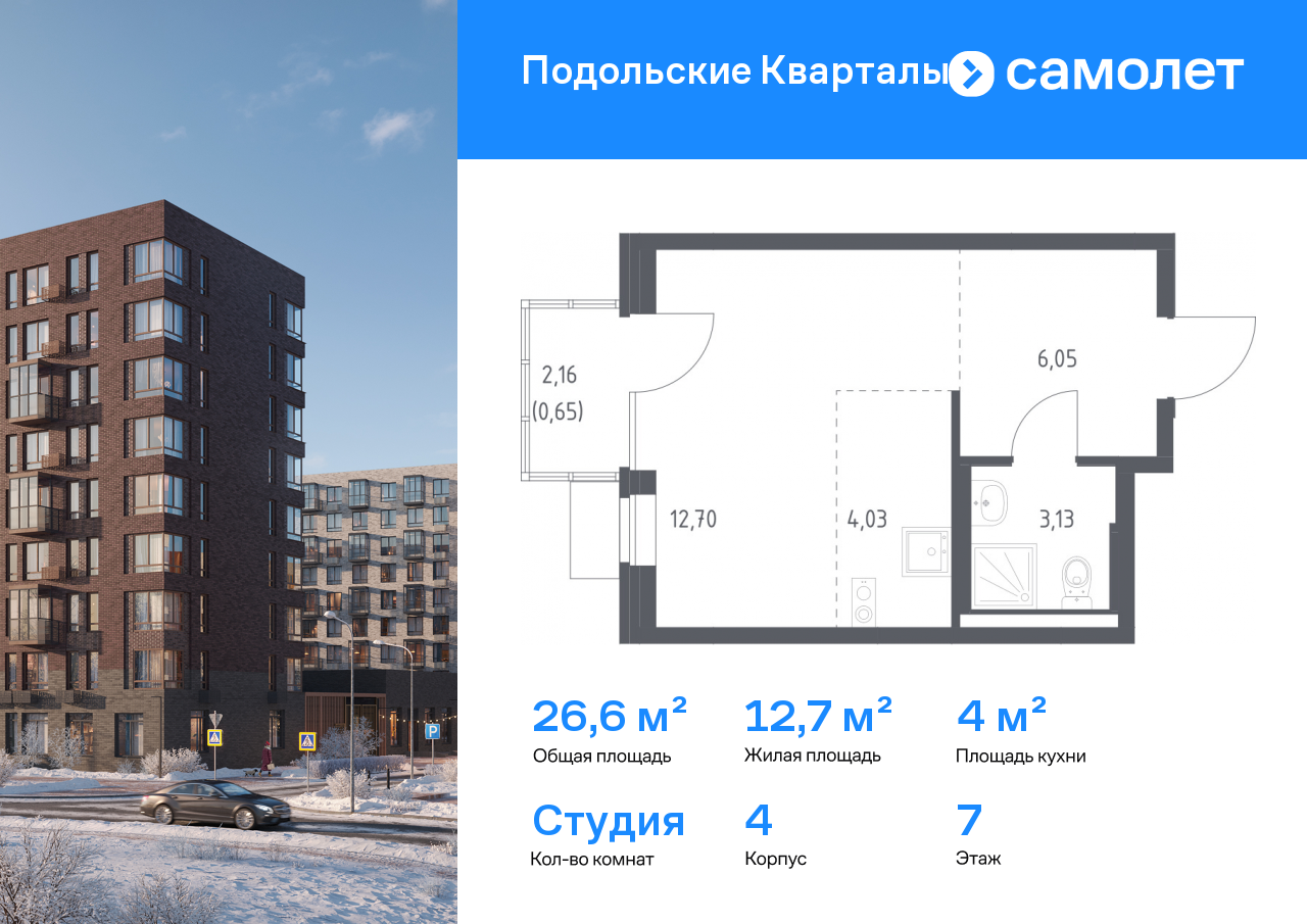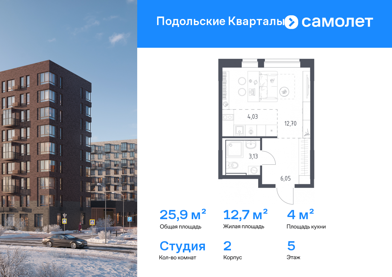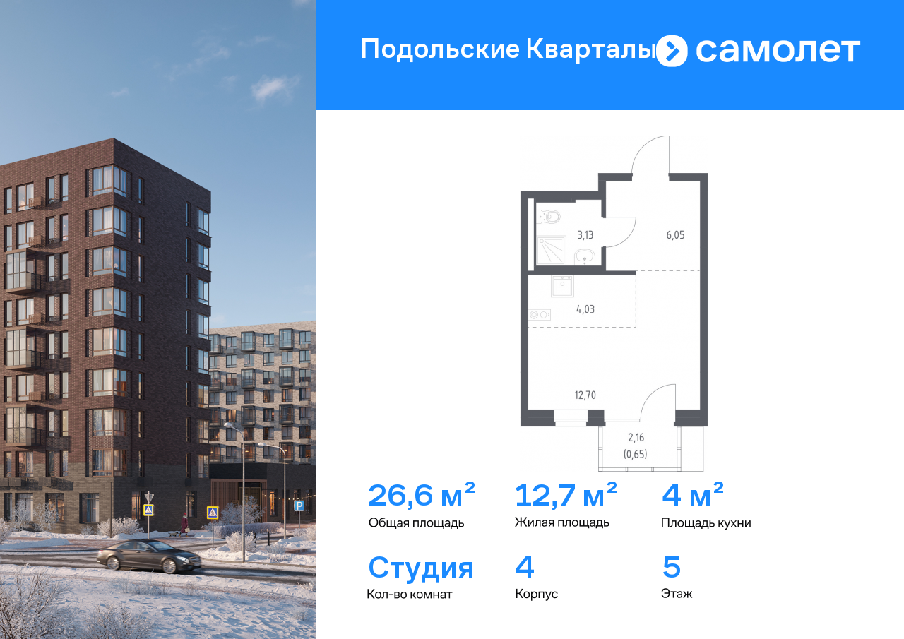 Квартиры-студии в ЖК «Подольские кварталы»