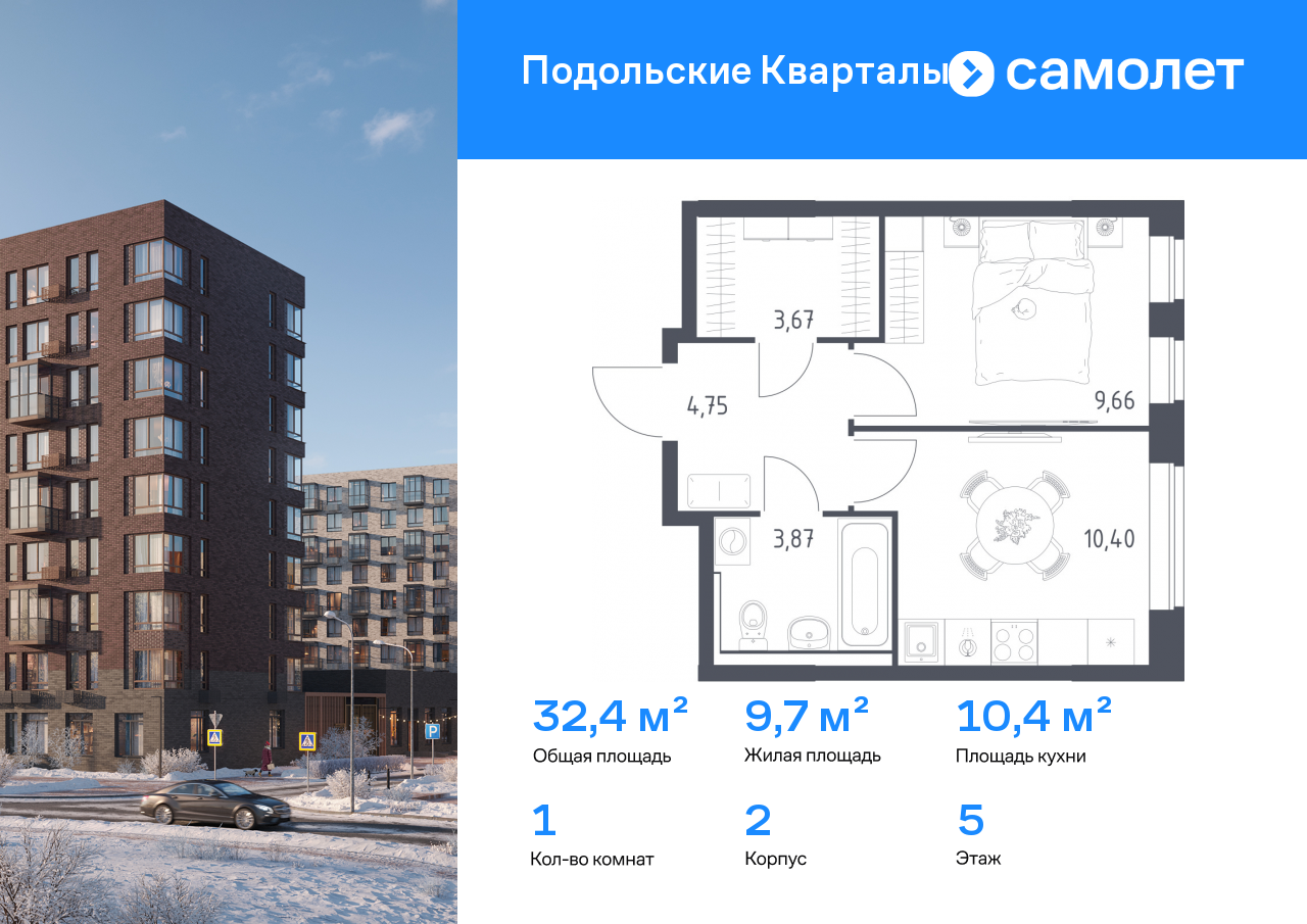 Однокомнатные квартиры в ЖК «Подольские кварталы»