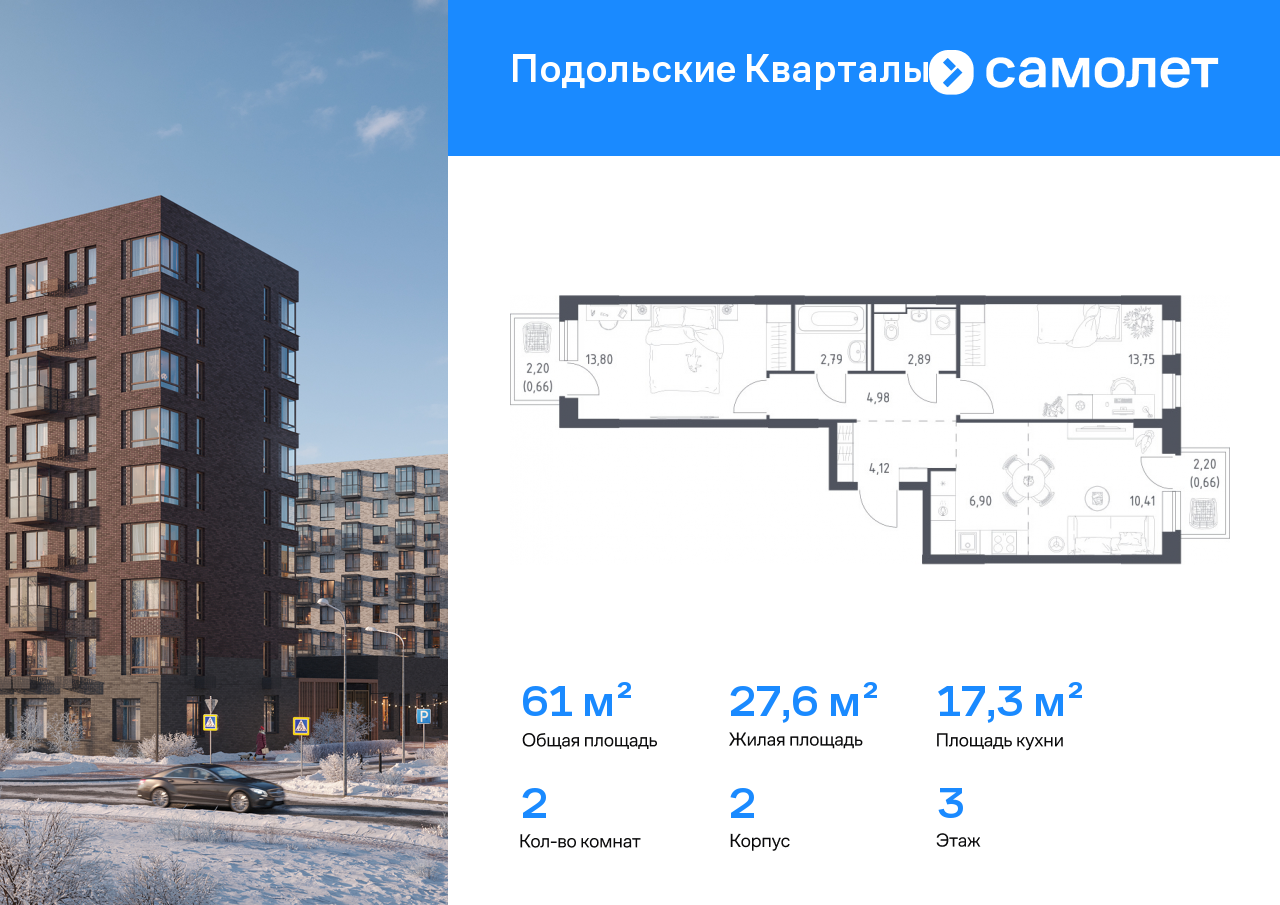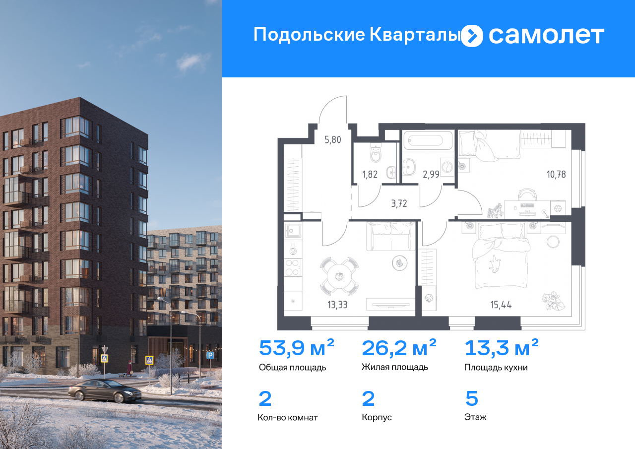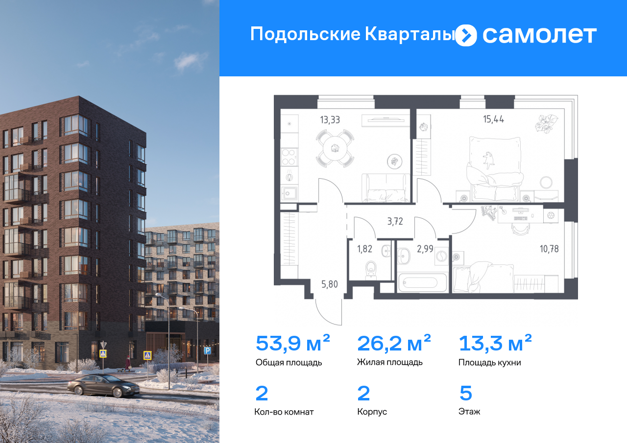 Двухкомнатные квартиры в ЖК «Подольские кварталы»