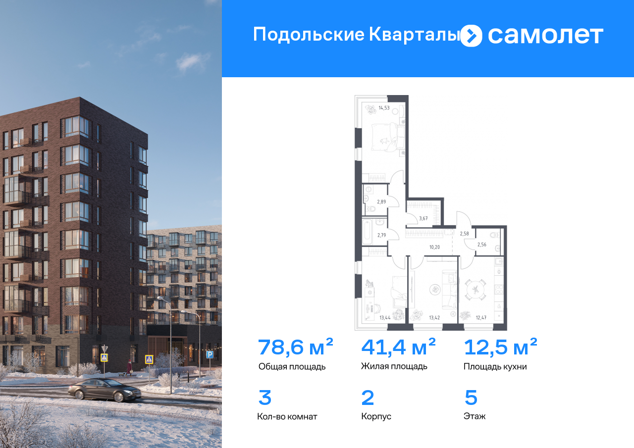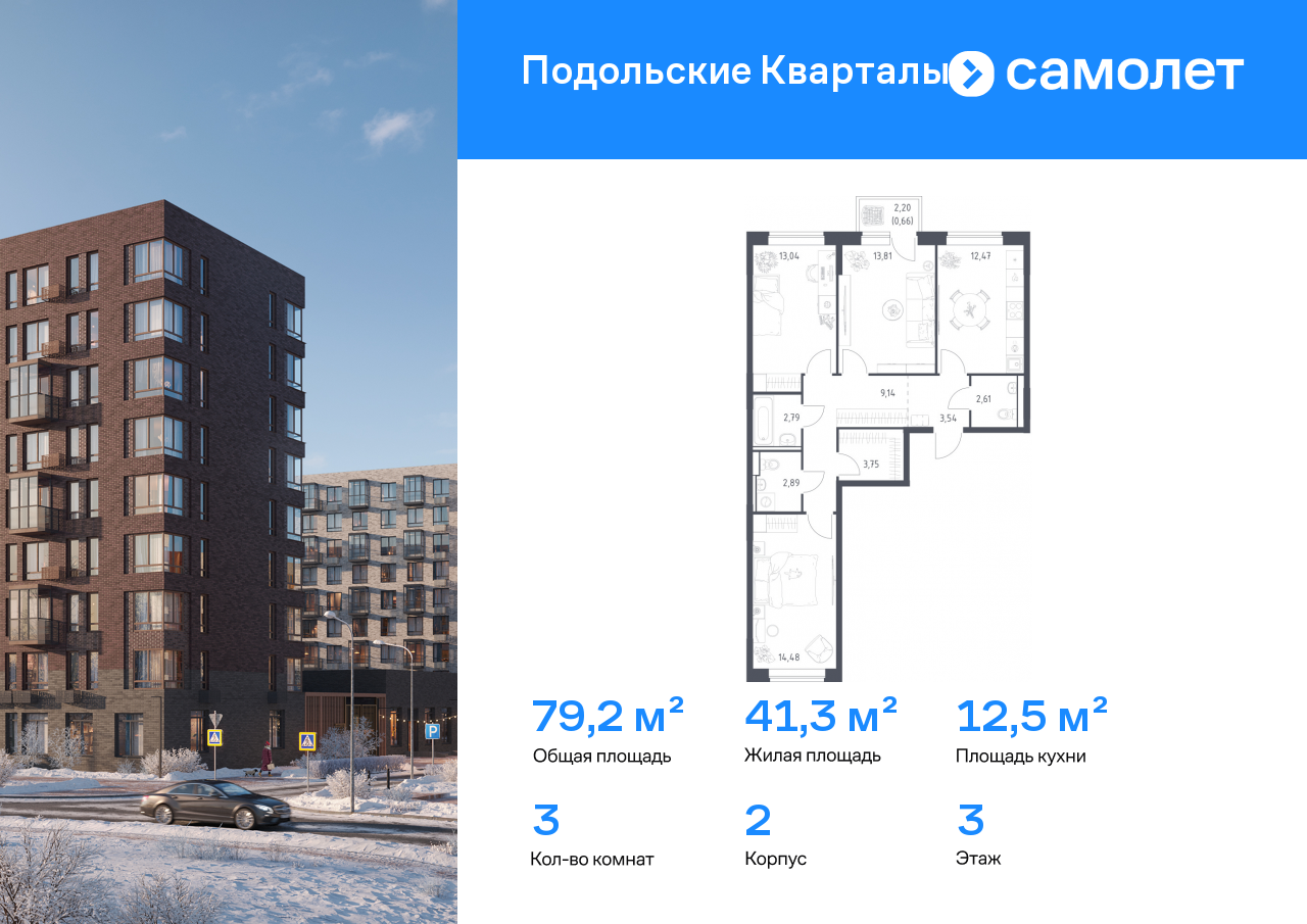 Трехкомнатные квартиры в ЖК «Подольские кварталы»