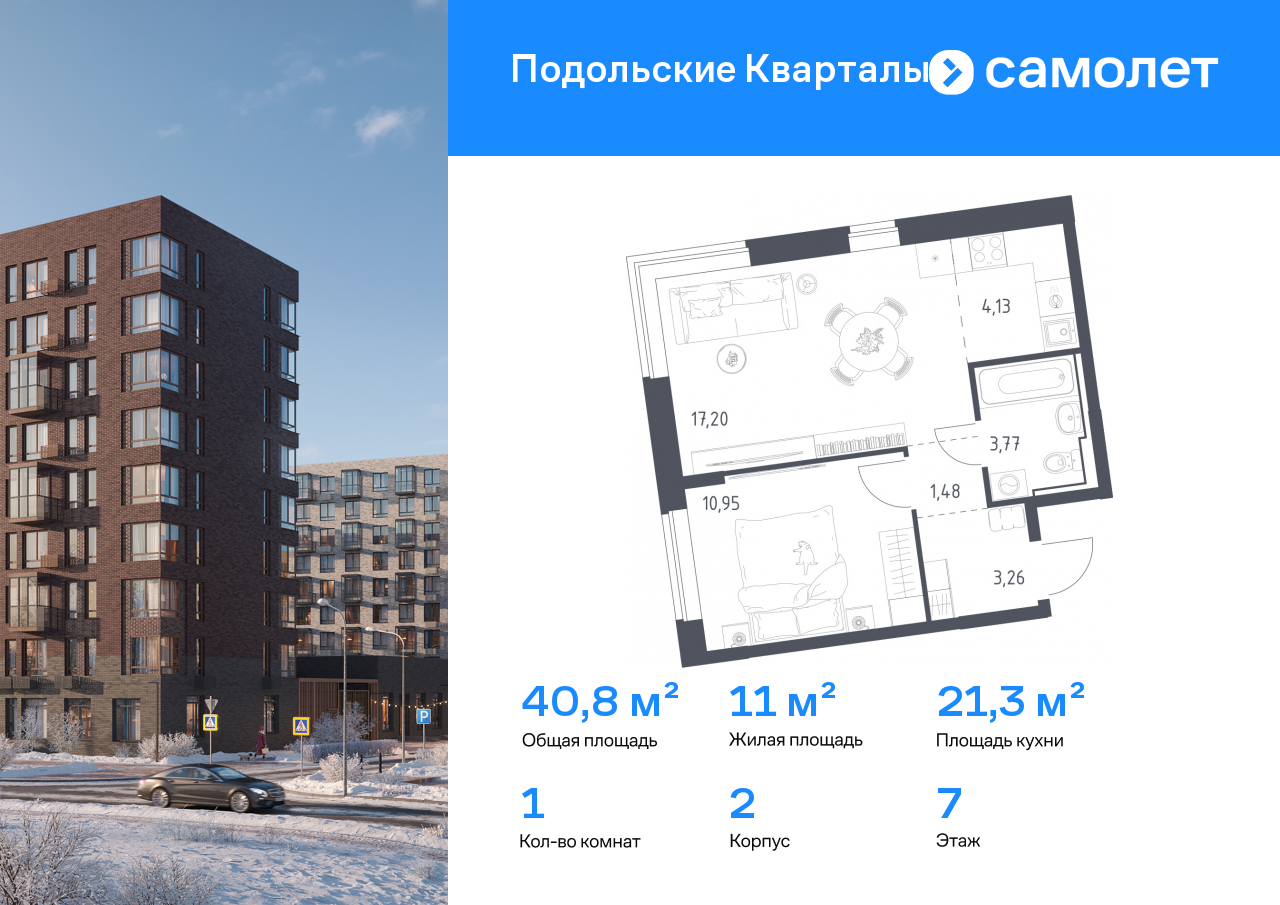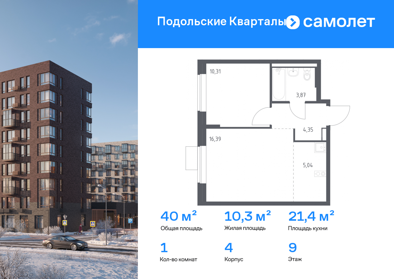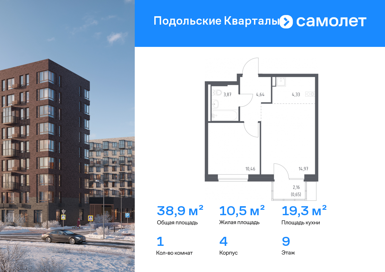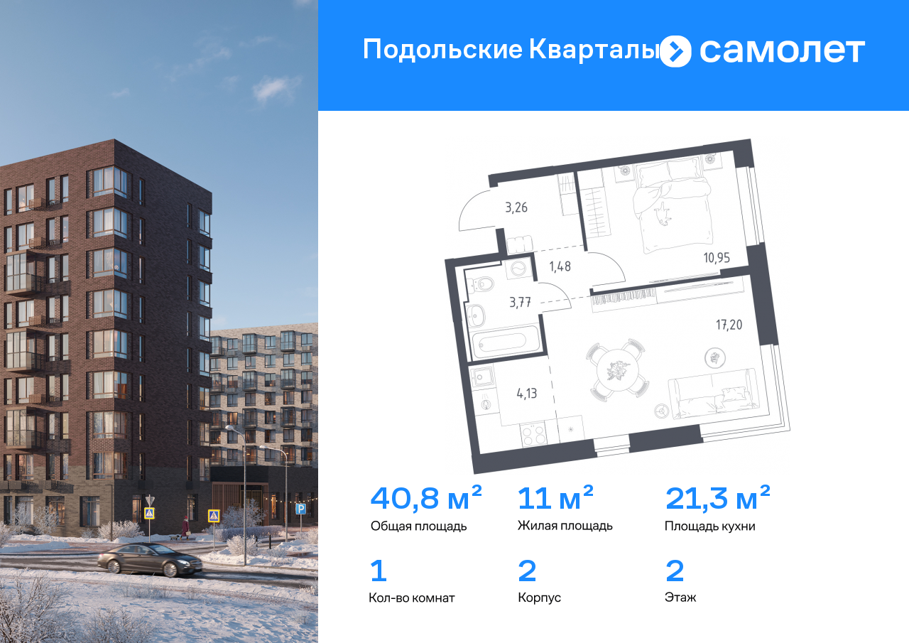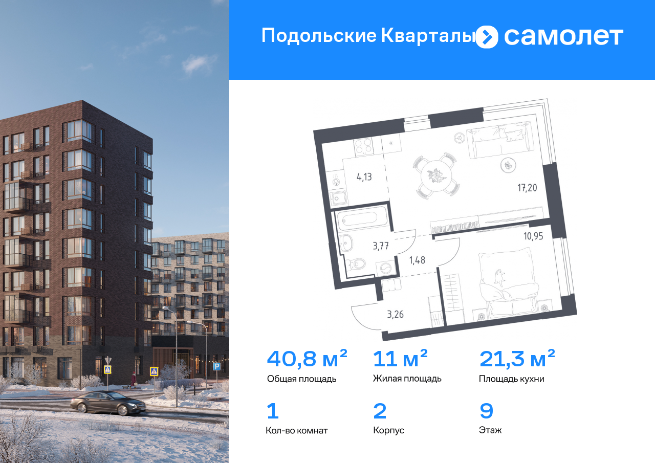 Евро однокомнатные квартиры в ЖК «Подольские кварталы»