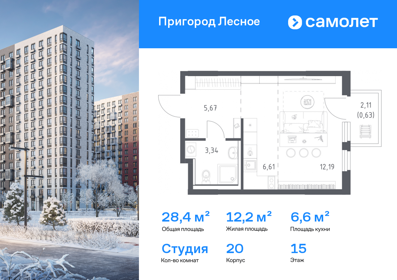 Квартиры-студии в ЖК «Пригород Лесное»