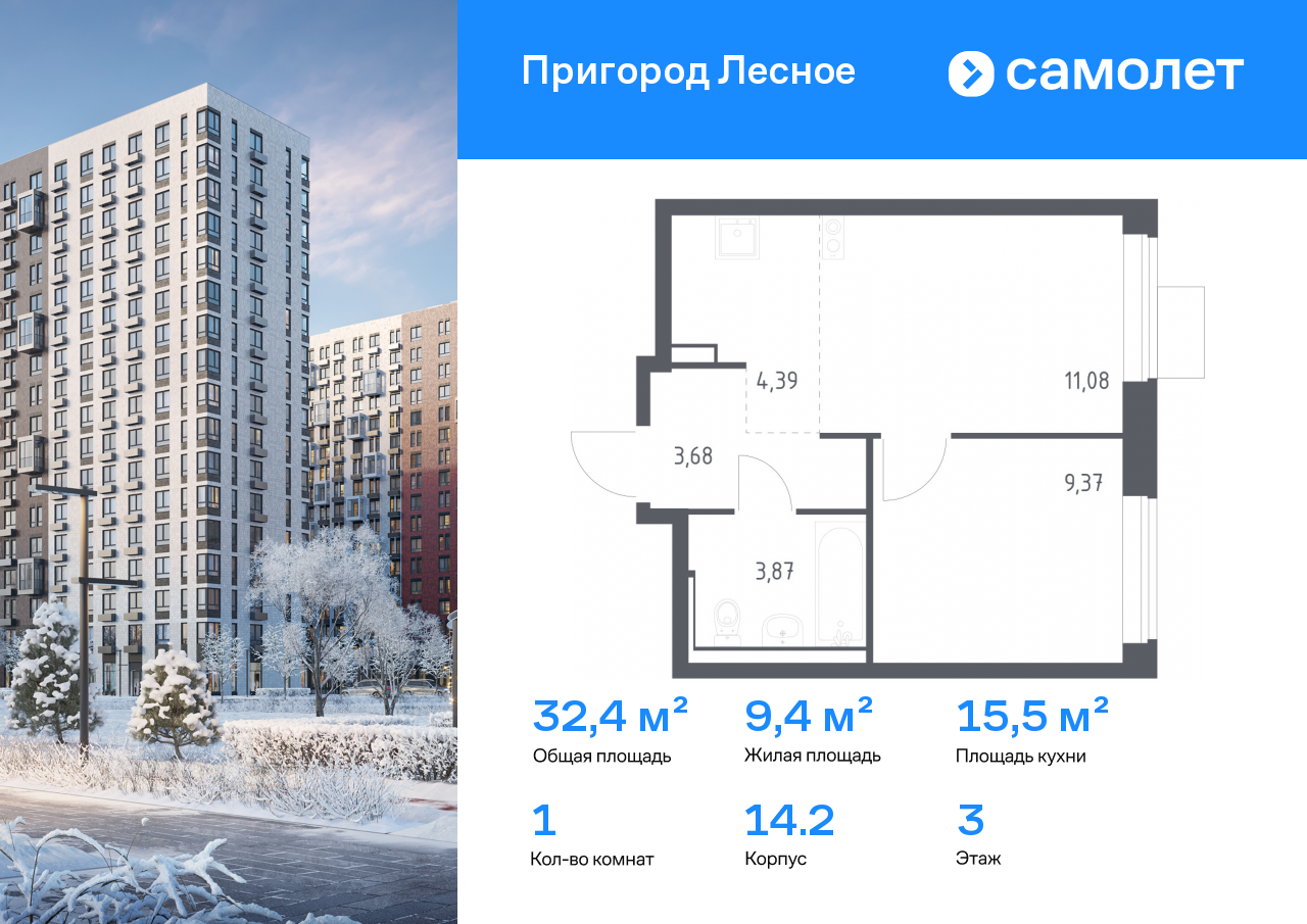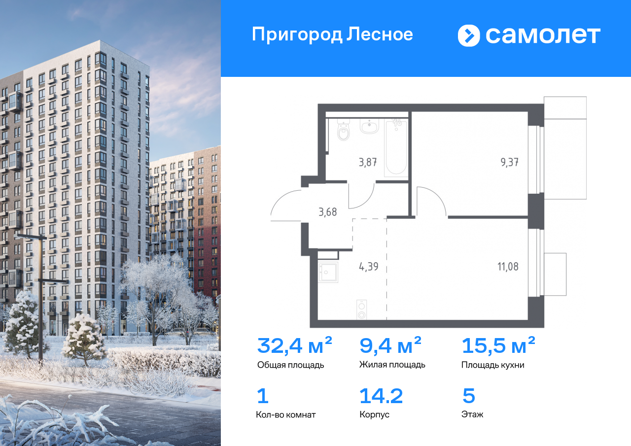 Однокомнатные квартиры в ЖК «Пригород Лесное»