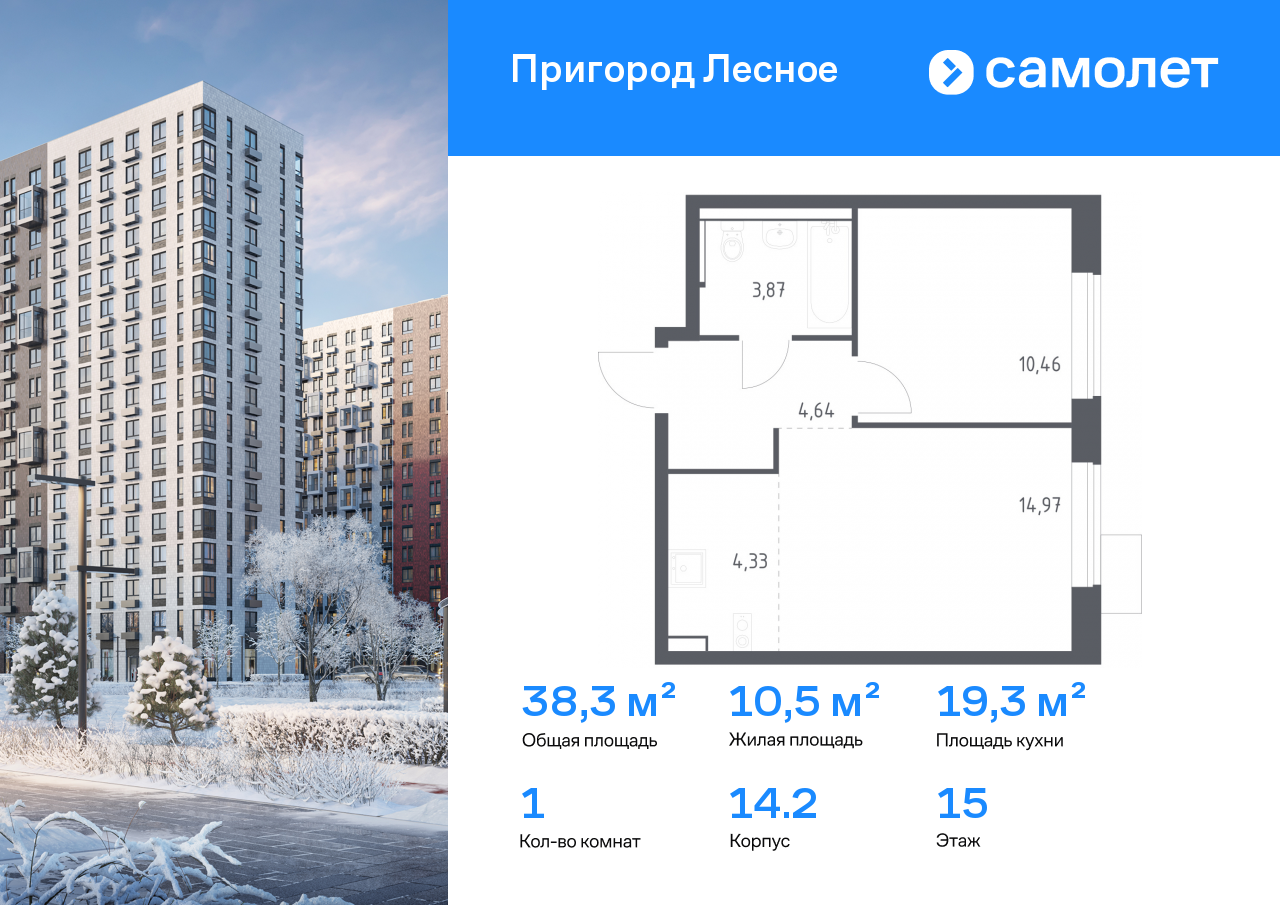 Евро однокомнатные квартиры в ЖК «Пригород Лесное»