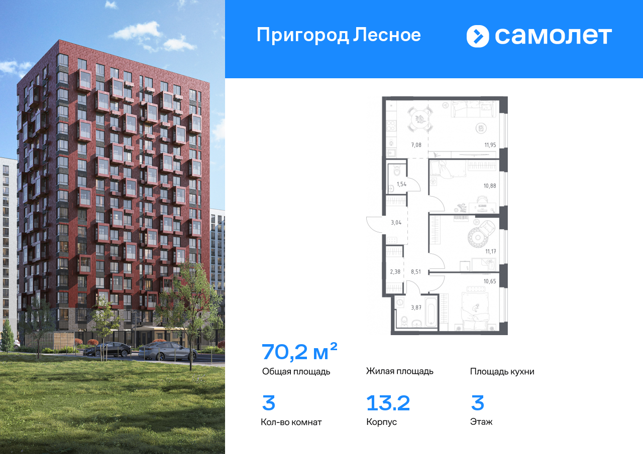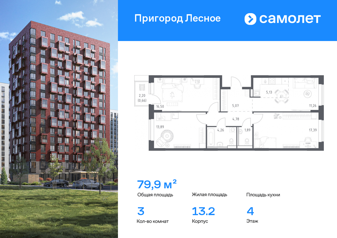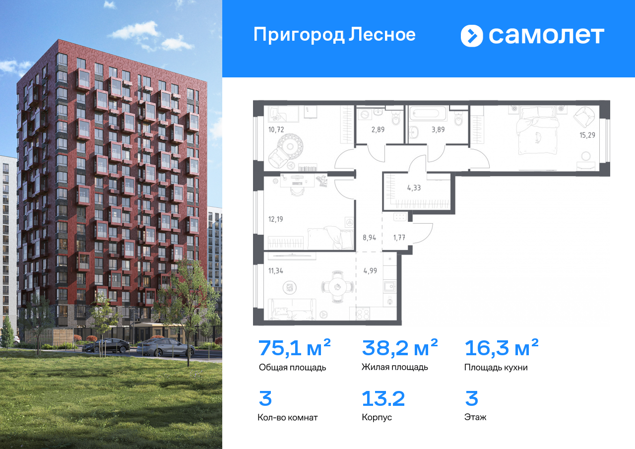 Евро трехкомнатные квартиры в ЖК «Пригород Лесное»